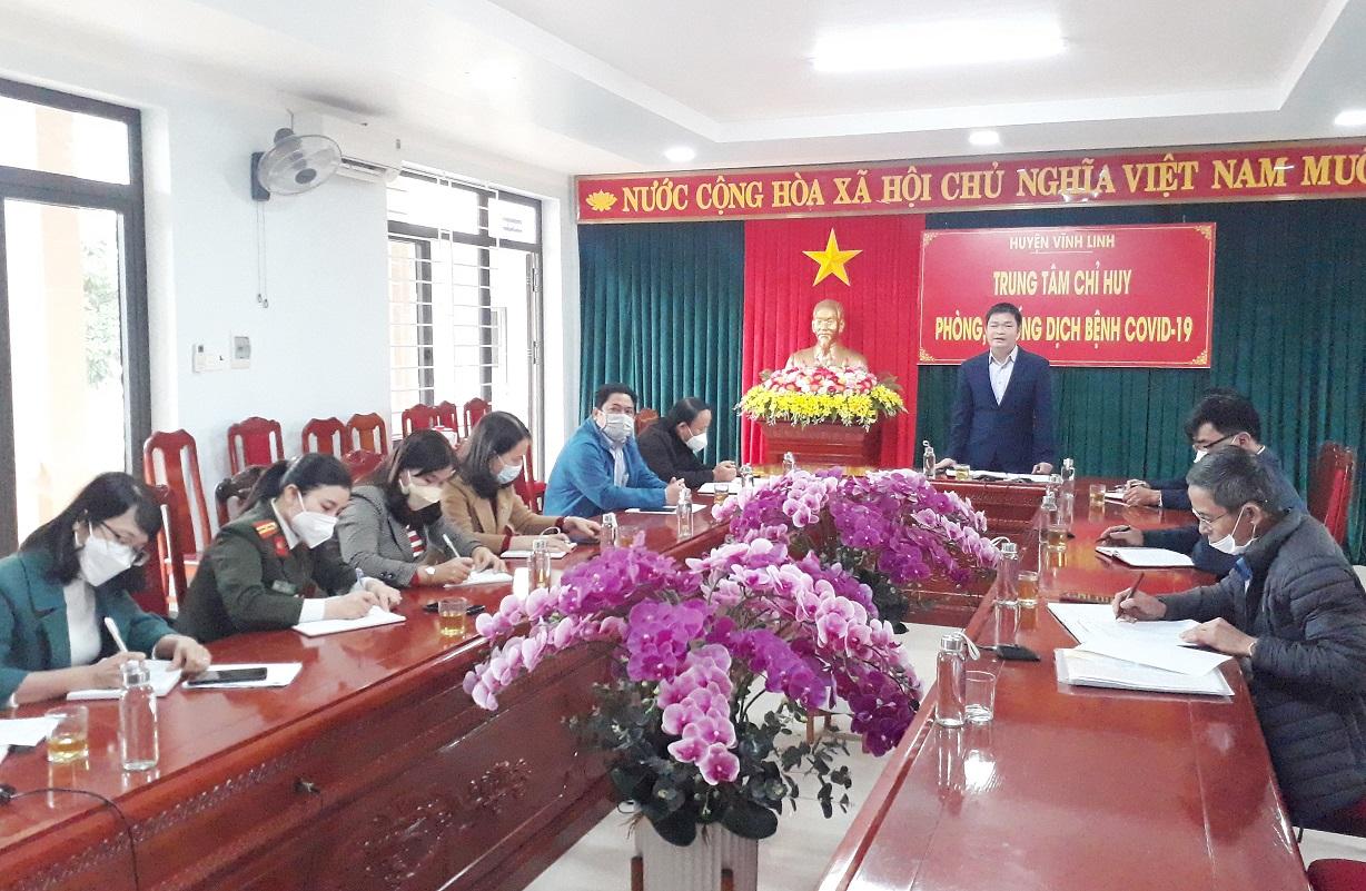 Ngày 8/2/2022, UBND huyện Vĩnh Linh tổ chức cuộc họp với các ban ngành liên quan để đánh giá tình hình dịch bệnh và tiêm chủng phòng Covid-19 trên địa bàn.