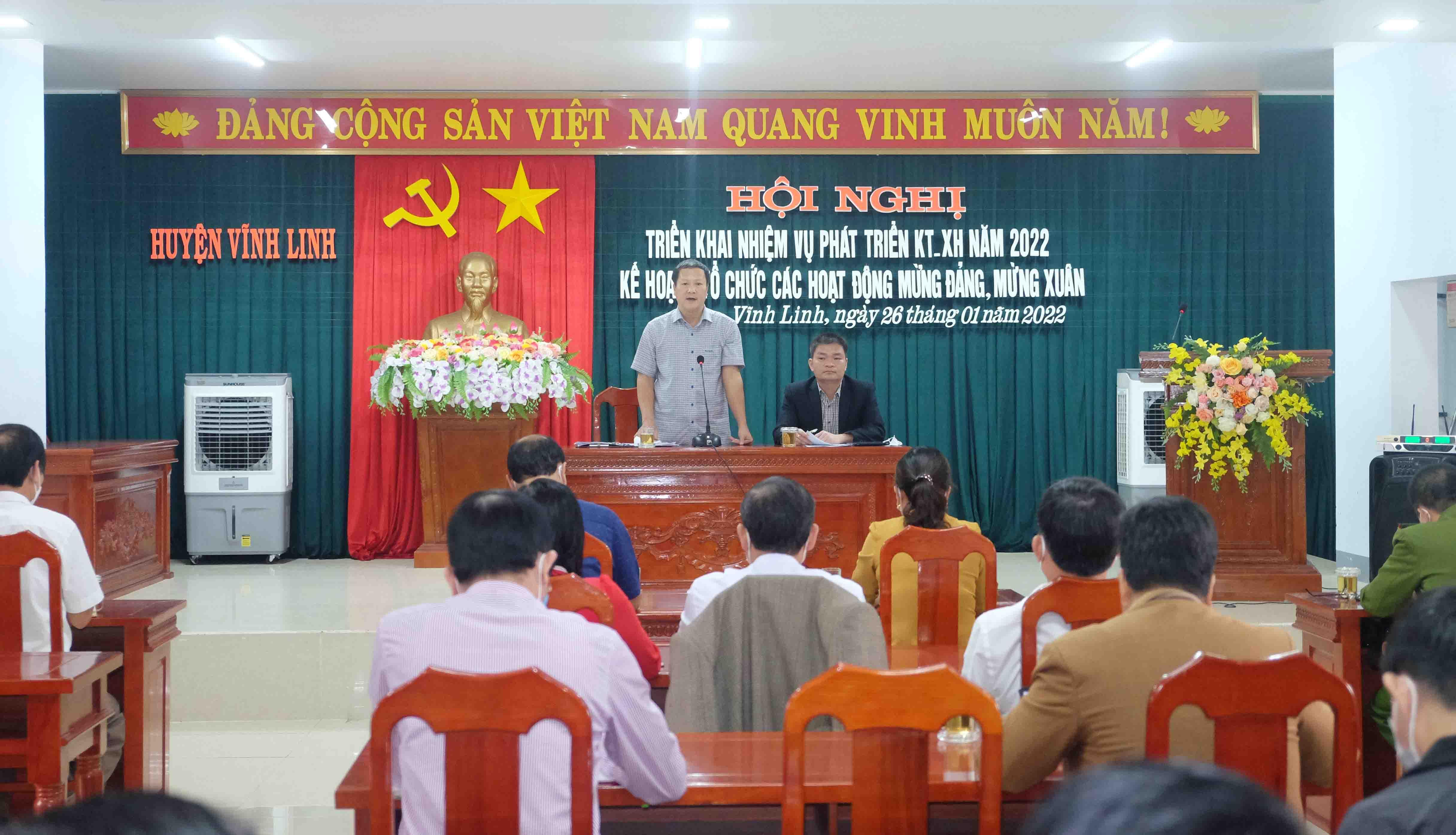 Cũng tại hội nghị, UBND huyện Vĩnh Linh triển khai kế hoạch mừng Đảng- mừng Xuân Nhâm Dần 2022 và phòng, chống dịch bệnh Covid-19 trước, trong và sau Tết Nguyên đán.
