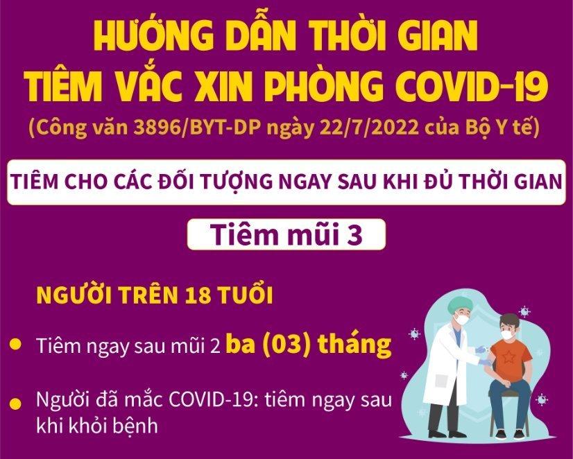 + Người trên 18 tuổi: Tiêm ngay sau mũi 2 ba tháng; người đã mắc Covid-19 thì tiêm ngay sau khi khỏi bệnh.