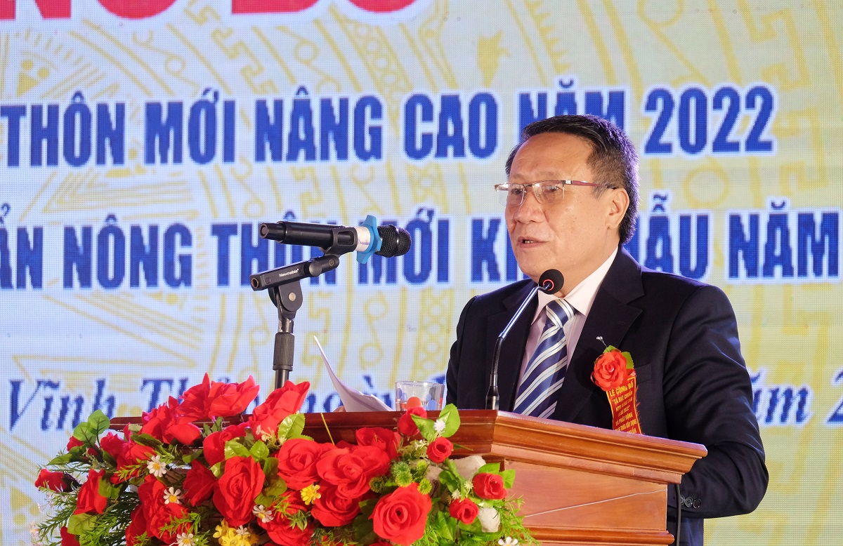 Đ/c Hà Sỹ Đồng- Phó Chủ tịch Thường trực UBND tỉnh trao Bằng công nhận xã đạt chuẩn NTM nâng cao năm 2022 cho xã Vĩnh Thủy, cùng thưởng công trình phúc lợi trị giá 400 triệu đồng.