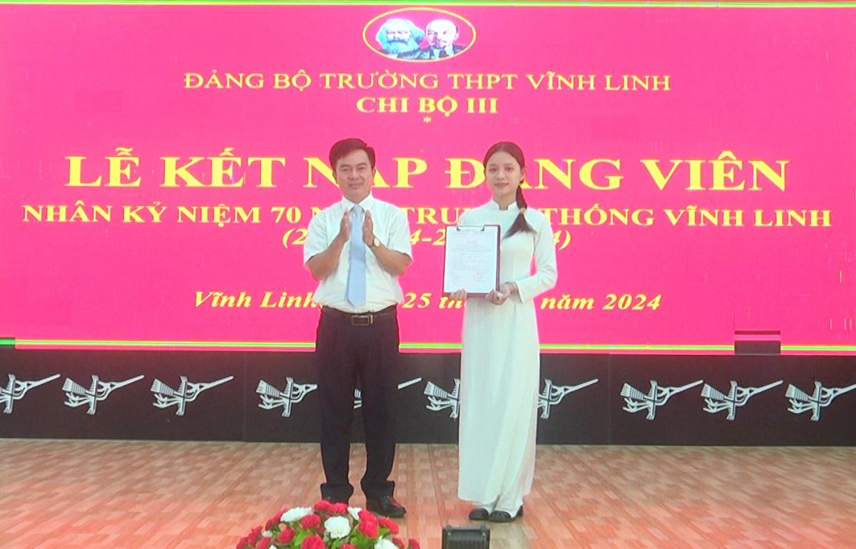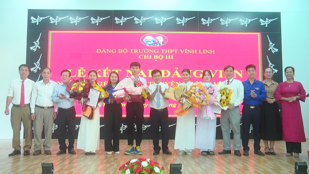 Hướng tới kỷ niệm 70 năm truyền thống Vĩnh Linh 25/8 (1954- 2024), chiều ngày 25/3/2024, Chi bộ 3 thuộc Đảng bộ trường THPT Vĩnh Linh đã tổ chức lễ kết nạp đảng viên mới cho 4 quần chúng ưu tú là học sinh lớp 12 có thành tích xuất sắc trong quá trình học tập và rèn luyện. Tham dự có các đồng chí: Trần Thị Thu- Bí thu Tỉnh đoàn, Trần Nhật Quang- Bí thư Huyện ủy Vĩnh Linh.