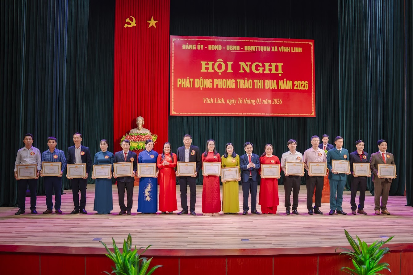 Ngày 16/01/2025, Đảng ủy, HĐND, UBND, UBMT xã Vĩnh Linh tổ chức hội nghị phát động phong trào thi đua năm 2026. Dự hội nghị có các đồng chí: Trần Nhật Quang, TUV, Bí thư Đảng ủy, Chủ tịch HĐND xã; Trần Thị Thu Hà, Phó Bí thư thường trực Đảng ủy; Nguyễn Thiên Tùng Phó Bí thư Đảng ủy, Chủ tịch UBND xã; Trần Minh Thiết, UVTV, Chủ tịch UBMTTQVN xã. Dự hội nghị còn có các đồng chí trong BTV Đảng ủy, Thường trực HĐND, UBND, UBMT TQVN xã và các tập thể, cá nhân có thành tích xuất sắc trong công tác năm 2025.