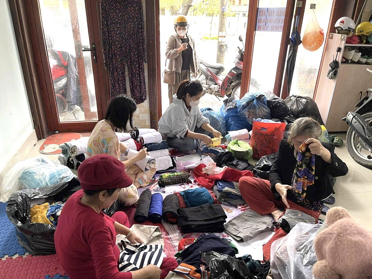Còn tại thôn Gia Lâm, xã Vĩnh Linh, Ban Công tác Mặt trận và Chi hội Phụ nữ thôn cũng đã đồng lòng quyên góp được số lượng lớn áo quần, nhu yếu phẩm, nhanh chóng gửi vào ủng hộ đồng bào miền Trung, Tây Nguyên bị thiệt hại do mưa lũ. Tấm lòng đáng trân quý nữa có thể kể thêm đó là bà Hoàng Thị Triều, 67 tuổi, giáo viên nghỉ hưu, ở thôn Hữu Nghị, xã Vĩnh Linh, chẳng ngại tuổi cao hay thời tiết mưa lạnh, từ ngày 23/11/2025, bà Triều vận động, tập kết ủng hộ quần áo, nhu yếu phẩm để giúp đỡ người dân vùng mưa lũ ở Nam Trung Bộ. Bà Hoàng Thị Triều, thôn Hữu Nghị, xã Vĩnh Linh chia sẻ: “Tôi chỉ suy nghĩ là trong lúc mình ấm áp trong ngôi nhà của gia đình mà bà con vùng lũ đang vất vả quá thì thương lắm, nên ai giúp được gì dù nhỏ hãy cứ làm. Vui vì khi mới thông báo gom áo quần, đồ dùng giúp đỡ đồng bào 1 ngày thôi mà mọi người trong cũng như ngoài thôn quan tâm, quyên góp nhiệt tình; rồi nhiều chị, em đến phụ giúp phân loại, sắp xếp, ghi chú từng món đồ cẩn thận, chu đáo để bà con trong đó dễ lựa chọn. Thiết nghĩ trong hoàn cảnh mưa, lạnh, trước mắt nhà cửa còn bộn bề do nước lũ thì bộ áo quần, chiếc chăn ấm hay chai dầu gội, nồi nấu cơm, dụng cụ sinh hoạt gia đình... đều sẽ được đón nhận với tấm lòng quý trọng, biết ơn…”.