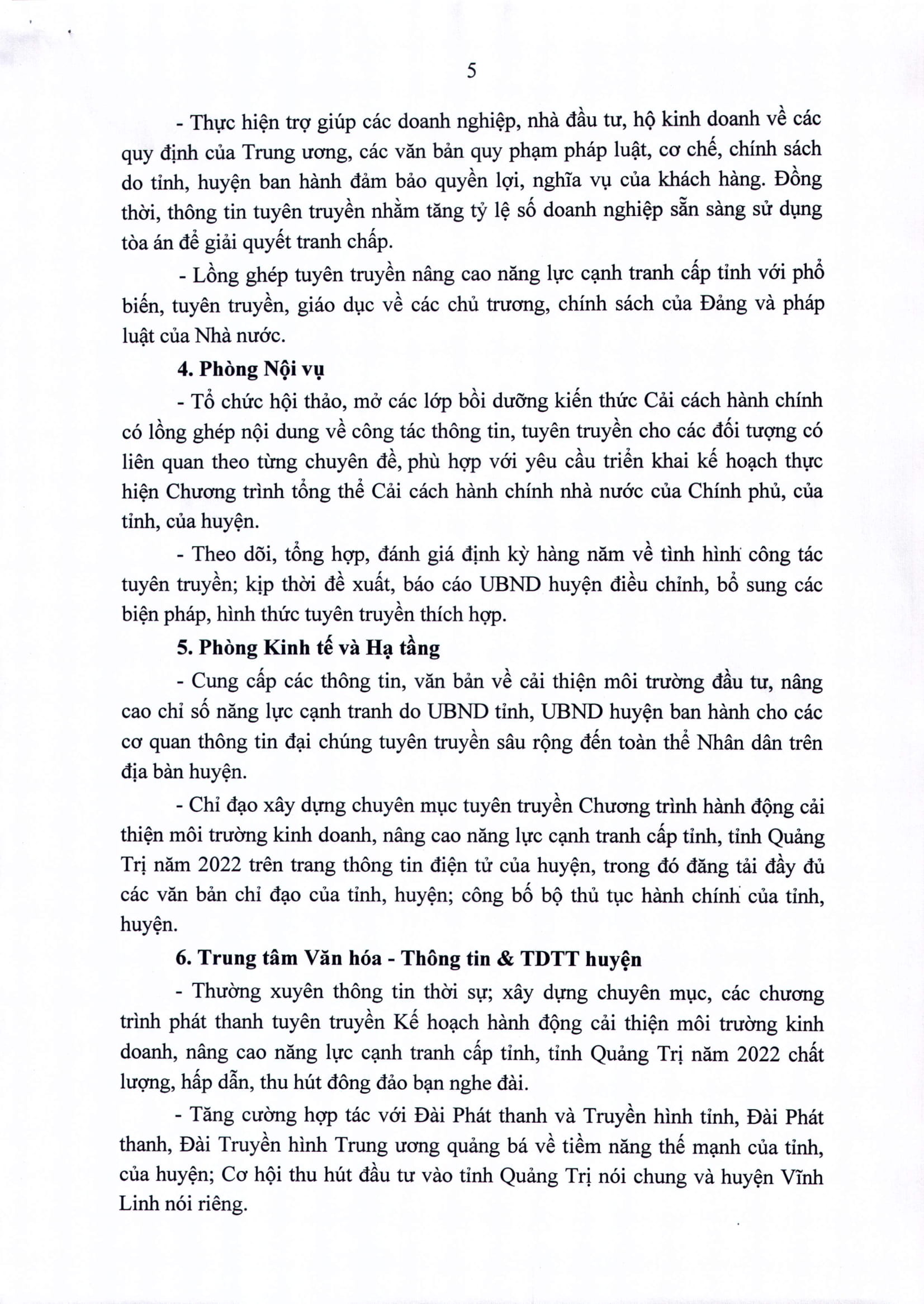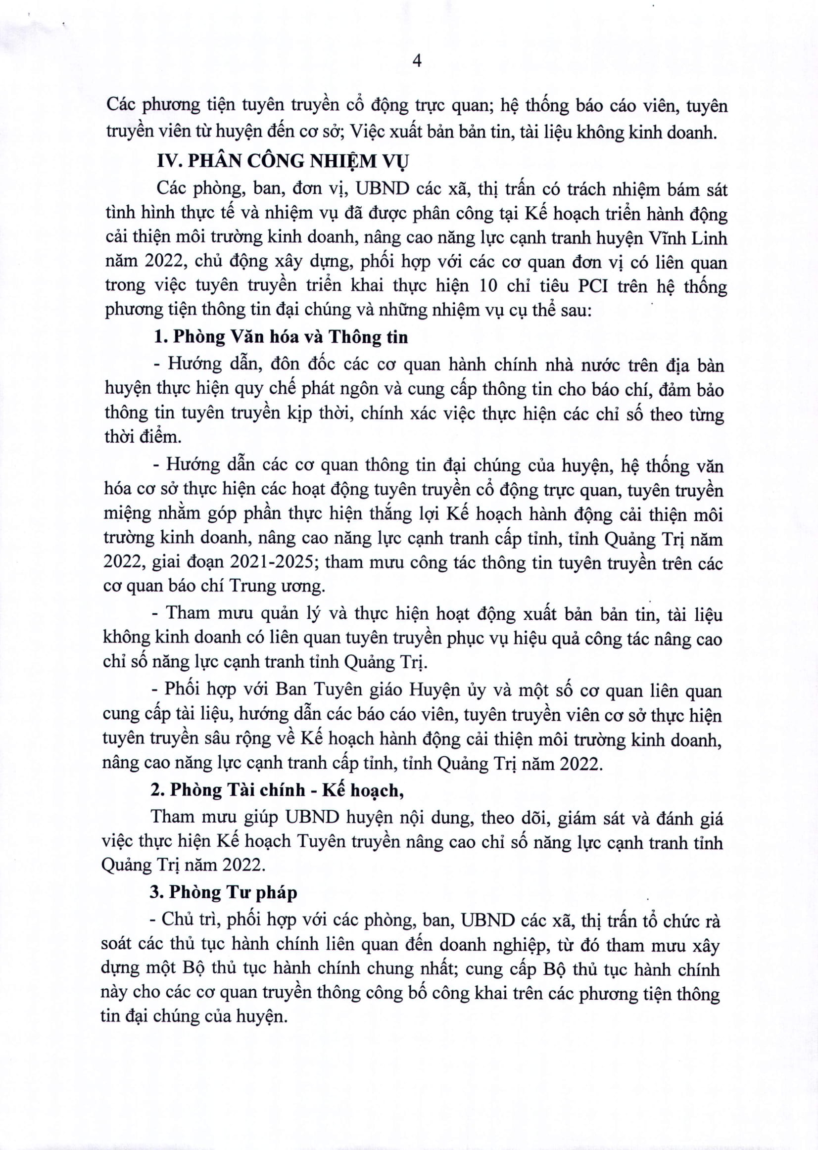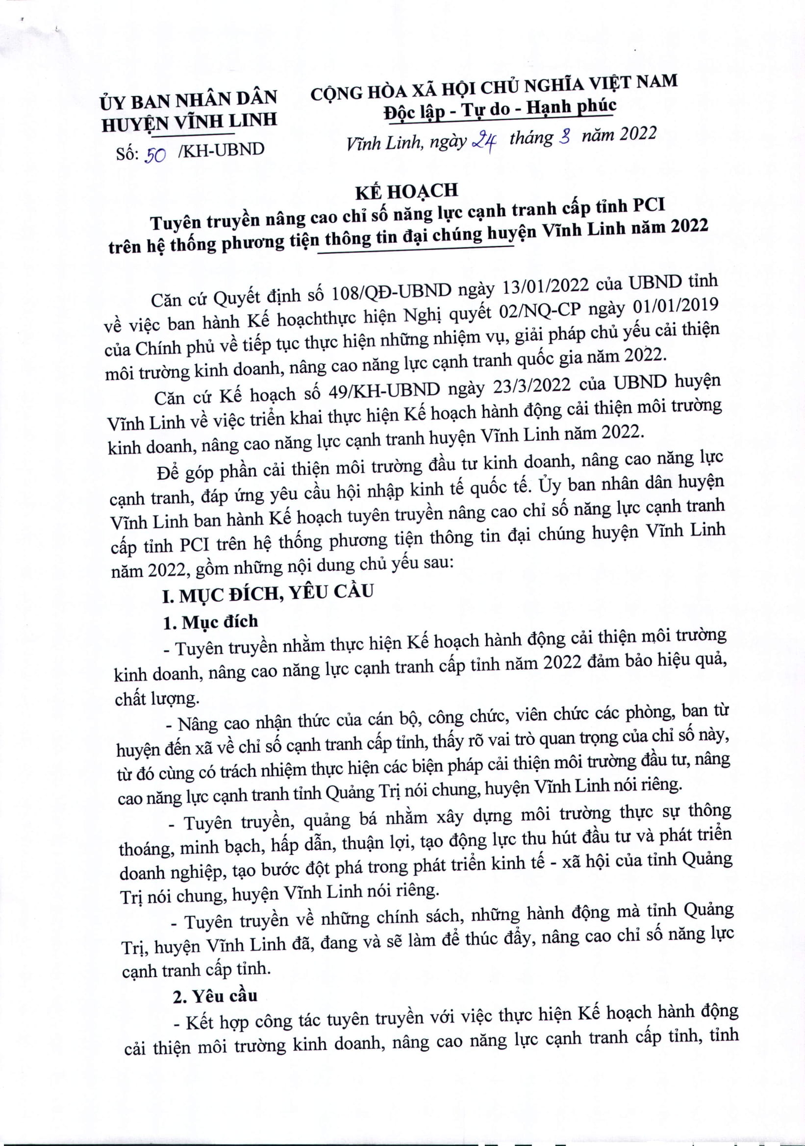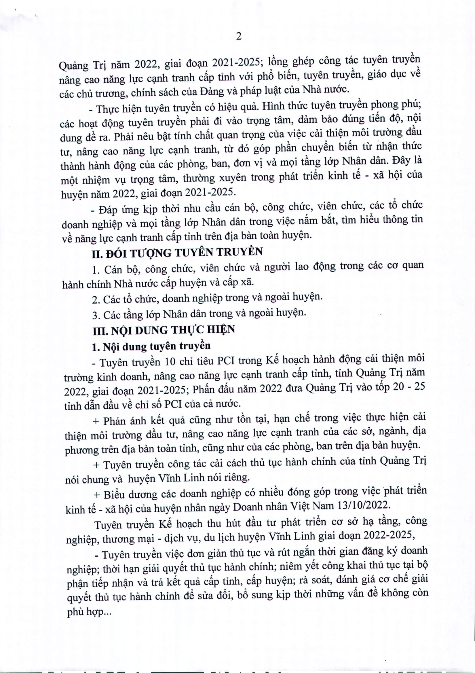 Ngày 24/3/2022, UBND huyện Vĩnh Linh có văn bản chỉ đạo đẩy mạnh tuyên truyền nâng cao Chỉ số năng lực cạnh tranh cấp tỉnh PCT trên các phương tiện thông tin đại chúng năm 2022.