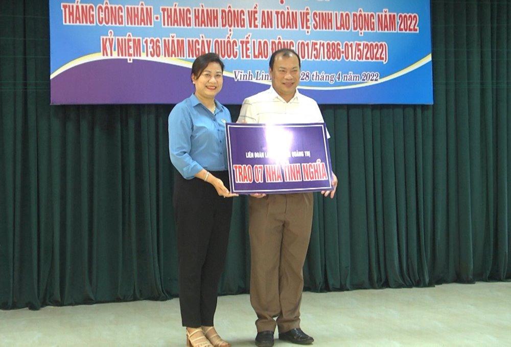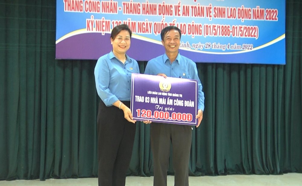 Cũng trong chương trình, các đơn vị công đoàn cơ sở trực thuộc đã tiến hành kí cam thực hiện chương trình “1 triệu sáng kiến “do Tổng Liên đoàn Việt Nam phát động, ra mắt Công đoàn cơ sở Công ty Scavi Quảng Trị gồm 277 đoàn viên. Nhân dịp này, LĐLĐ tỉnh đã trao hỗ trợ 3 ngôi nhà mái ấm cho đoàn viên khó khăn trên địa bàn huyện; LĐLĐ huyện kêu gọi và phối hợp với LĐLĐ tỉnh, UBMTTQ các cấp trao tặng 9 nhà mái ấm cho đoàn viên. Đồng thời LĐLĐ tỉnh và huyện cũng đã trao 25 suất quà cho đoàn viên, người lao động có hoàn cảnh khó khăn.
