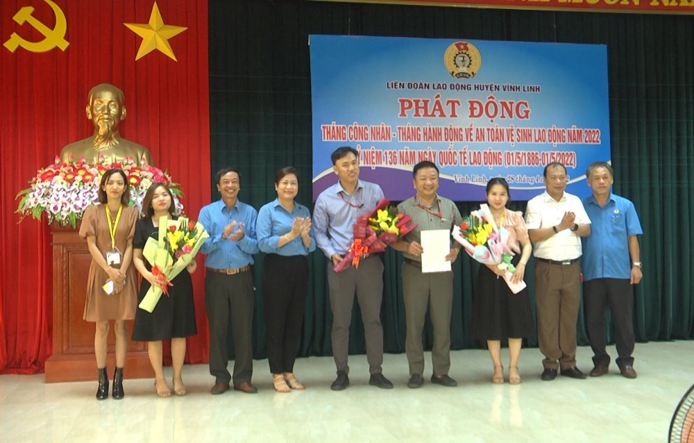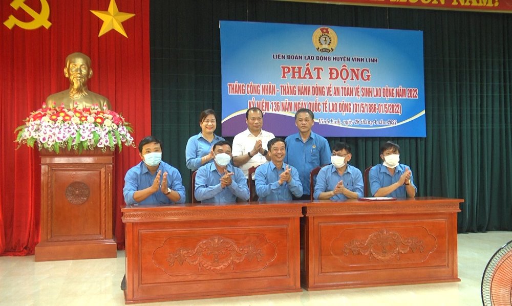 Nhân kỷ niệm 136 năm ngày Quốc tế lao động 1/5 (1886-2022), 47 năm ngày giải phóng miền Nam, thống nhất đất nước 30/4 (1975-2022) và 50 năm ngày giải phóng tỉnh Quảng Trị 1/5 (1972-2022), ngày 28/4/2022, Liên đoàn lao động huyện Vĩnh Linh đã tổ chức lễ phát động động Tháng Công nhân và Tháng hành động an toàn vệ sinh lao động năm 2022. Tham dự có đồng chí Nguyễn Thị Hoài Lê - Phó Chủ tịch LĐLĐ tỉnh, Vũ Văn Phong - Trưởng Ban Dân vận Huyện ủy, Chủ tịch UBMT huyện.