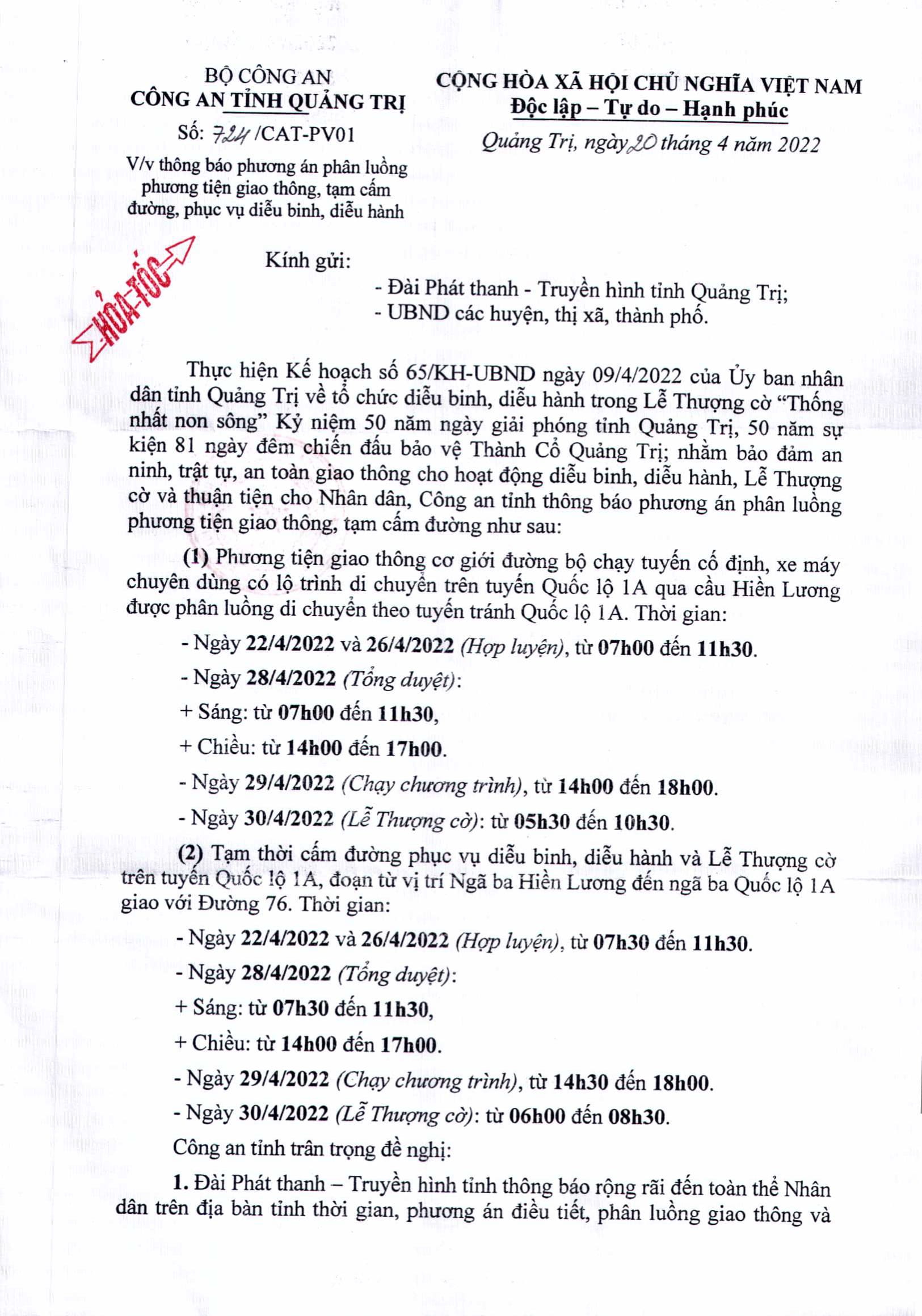 Phương án phân luồng phương tiện giao thông phục vụ Lễ hội Thống nhất non sông 30/4