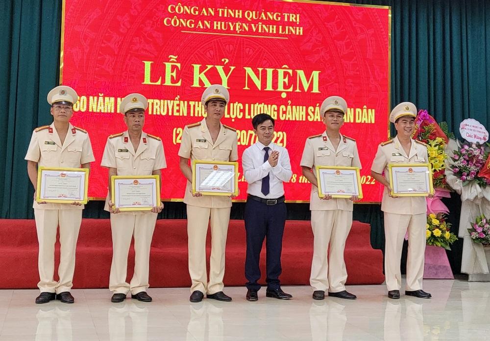 Nhân dịp này, UBND huyện Vĩnh Linh đã biếu dương cho các tập thể, cá nhân thuộc lực lượng Cảnh sát Nhân dân Công an huyện vì đã đạt được nhiều thành tích xuất sắc trong thời gian qua.