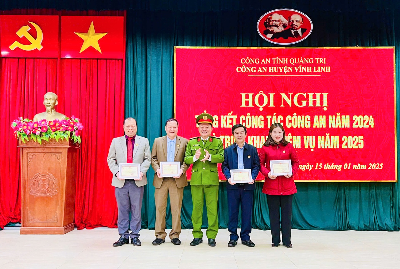 Dịp này, nhiều cá nhân được trao tặng Huy chương “Vì an ninh Tổ quốc” của Chủ tịch nước, Kỷ niệm chương “Bảo vệ an ninh Tổ quốc” của Bộ trưởng Bộ Công an; cùng nhiều tập thể và cá nhân Công an huyện Vĩnh Linh được khen thưởng vì có thành tích trong năm qua.