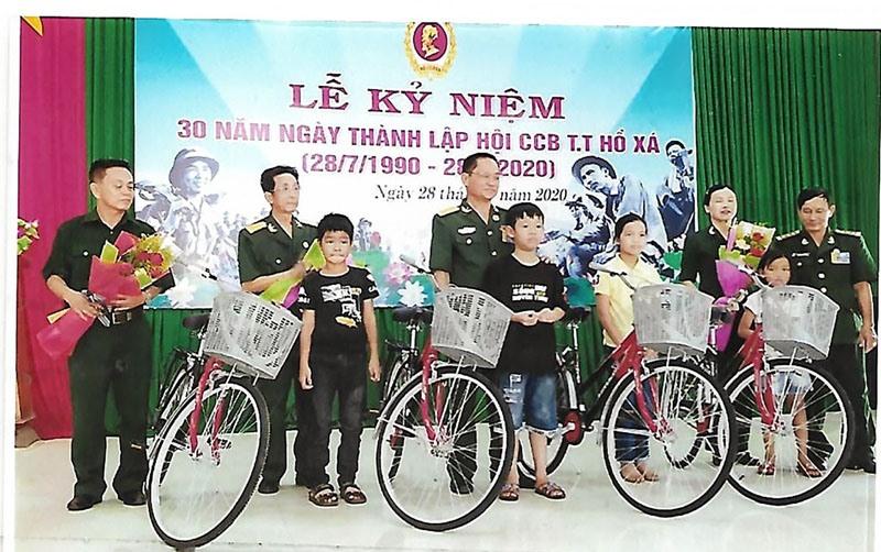 Chi hội CCB thị trấn Hồ Xá tặng xe đạp cho học sinh nghèo vượt khó học giỏi - Ảnh: L.N.T