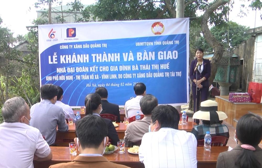 Thông tin từ Uỷ ban MTTQVN huyện Vĩnh Linh, đẩy mạnh phong trào “Tết vì người nghèo và nạn nhân chất độc da cam” hàng năm, nhân dịp Tết Quý Mão 2023, Uỷ ban MTTQVN tỉnh Quảng Trị sẽ trao tặng 15 nhà Đại đoàn kết, tổng kinh phí 1 tỷ đồng cho 15 hộ hoàn cảnh đặc biệt khó khăn thuộc 3 huyện Vĩnh Linh, Gio Linh và Đakrông. Trong đó, riêng huyện Vĩnh Linh được hỗ trợ 5 nhà đại đoàn kết.