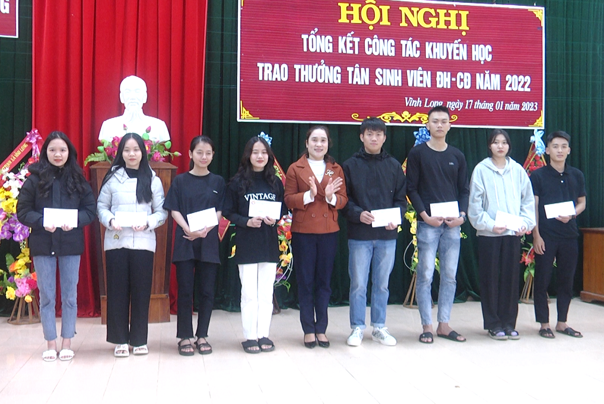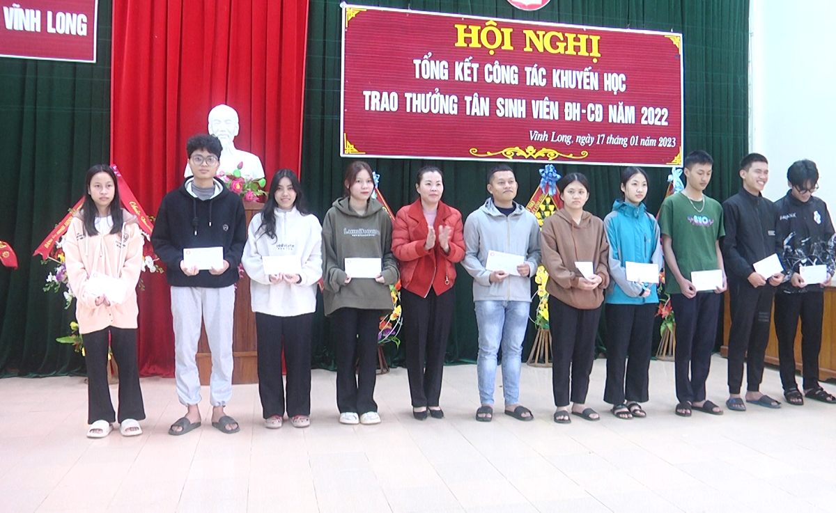 Cùng ngày 17/1/2023, Hội Khuyến học xã Vĩnh Long cũng đã tổ chức trao thưởng cho 54 em đậu đại học, cao đẳng và tổng kết công tác khuyến học năm 2022.