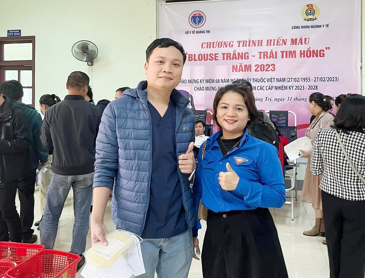 Bác sĩ Nguyễn Hải Đăng (bên trái) tham gia hiến máu tình nguyện.