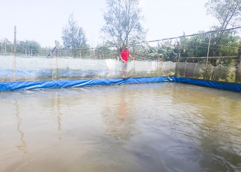 Mô hình nuôi cá lóc thương phẩm trong bể xi măng lót bạt đã khẳng định hiệu quả kinh tế ở thôn Đông Luật, xã Vĩnh Thái, huyện Vĩnh Linh - Ảnh: H.A