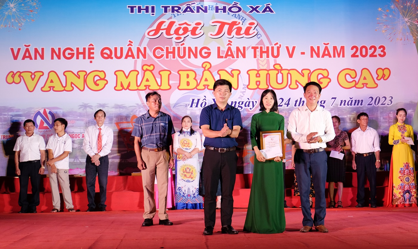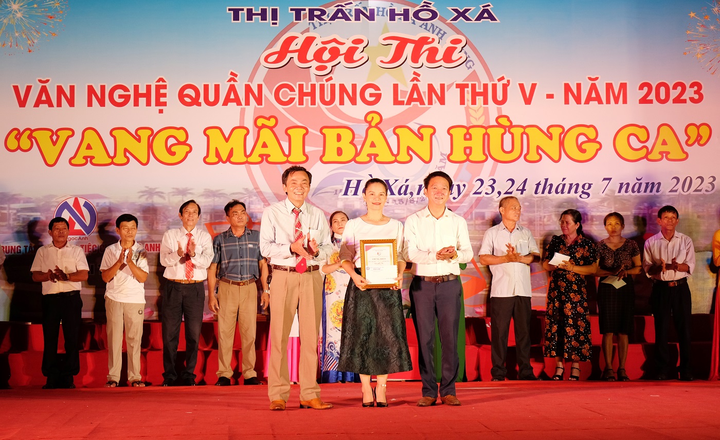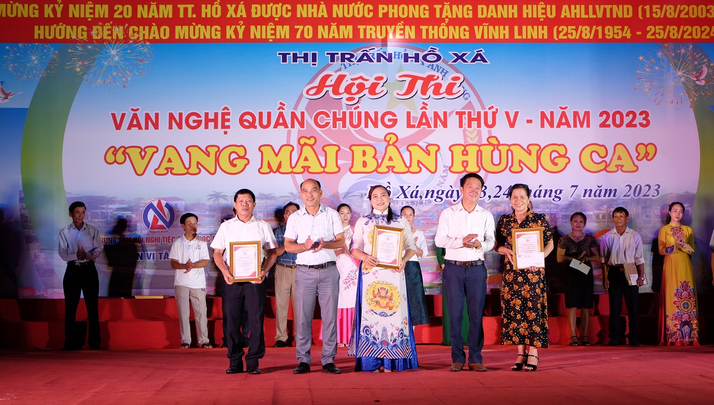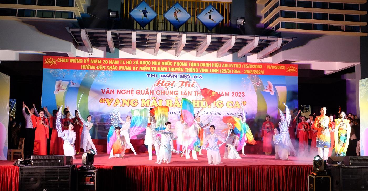 Sau 2 đêm diễn ra sôi nổi, lôi cuốn, vào tối 24/5/2023, Hội thi Văn nghệ quần chúng thị trấn Hồ Xá lần thứ 5- 2023 với chủ đề "Vang mãi bản hùng ca" chào mừng kỷ niệm 20 năm ngày thị trấn đón nhận danh hiệu Anh hùng LLVTND 15/8 (2003- 2023) và hướng tới kỷ niệm 70 năm Ngày truyền thống Vĩnh Linh 25/8 (1954- 2024) đã hoàn thành 17 chương trình biểu diễn đến từ 17 khu phố trên địa bàn.