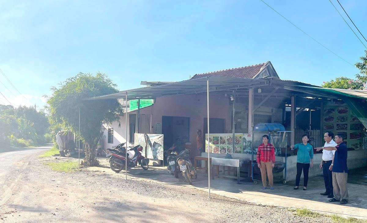 Vị trí “đắc địa” của gia đình được ông Trần Trọng Tưởng (ngoài cùng bên phải) tự nguyện hiến một phần làm đường nội thị Khóm 2, thị trấn Bến Quan.