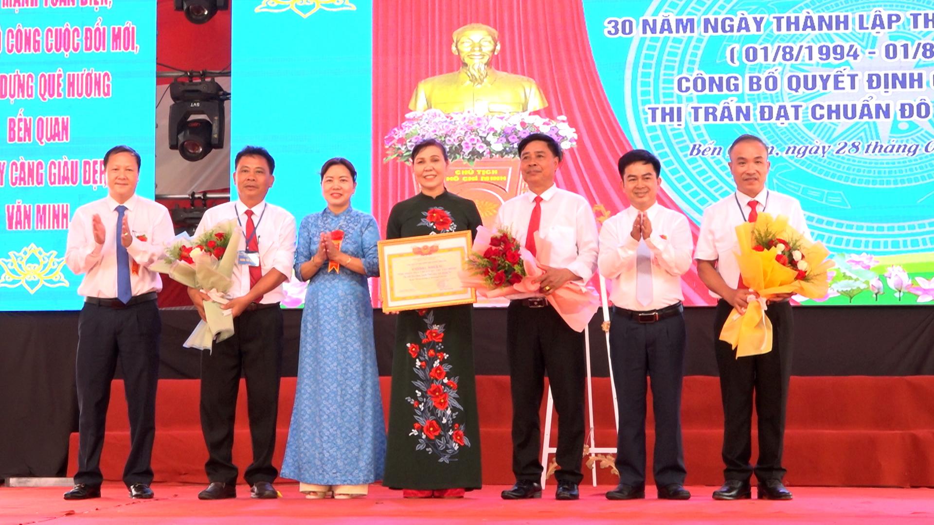 Lễ kỉ niệm 30 năm ngày thành lập còn là dịp để thị trấn Bến Quan thể hiện tinh thần đoàn kết, bày tỏ lòng quyết tâm nỗ lực phấn đấu để đạt được nhiều thành tích hơn nữa trong các giai đoạn tiếp theo. Tại lễ kỉ niệm, lãnh đạo huyện Vĩnh Linh đã trao quyết định công nhận đạt chuẩn đô thị văn minh cho Nhân dân và cán bộ thị trấn Bến Quan. UBND thị trấn Bến Quan biểu dương, khen thưởng cho các tập thể và cá nhân đạt thành tích xuất sắc trong phong trào thi đua xây dựng đô thị văn minh.