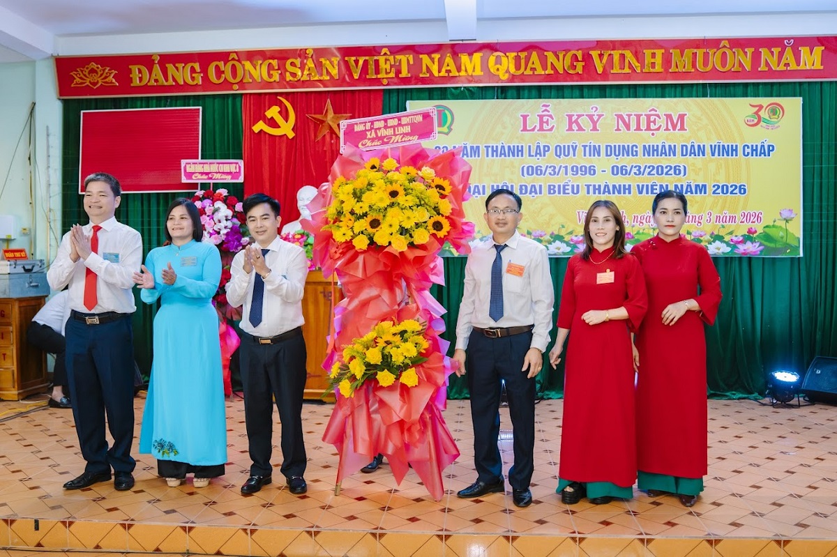 Ngày 31/3/2026, Quỹ tín dụng Nhân dân (TDND) Vĩnh Chấp tổ chức lễ kỷ niệm 30 năm thành lập và Đại hội Đại biểu thành viên năm 2026. Tham dự có đồng chí Nguyễn Đức Đồng, Phó Giám đốc Ngân hàng Nhà nước Chi nhánh Khu vực 8; Đinh Thị Quỳnh Hoa, Chủ tịch Liên minh Hợp Tác Xã tỉnh Quảng Trị; Đại diện lãnh đạo Ngân hàng HTX Chi nhánh Quảng Bình; Đại diện xã Vĩnh Linh, xã Vĩnh Hoàng; cùng cán bộ, nhân viên, thành viên Quỹ TDND Vĩnh Chấp qua các thời kỳ.