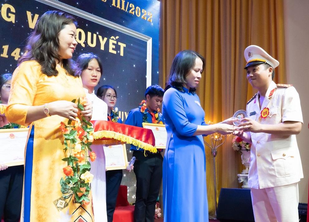 Chiến sĩ Dương Văn Quyết tại Lễ tuyên dương “Gương mặt trẻ Vĩnh Linh tiêu biểu" năm 2022.