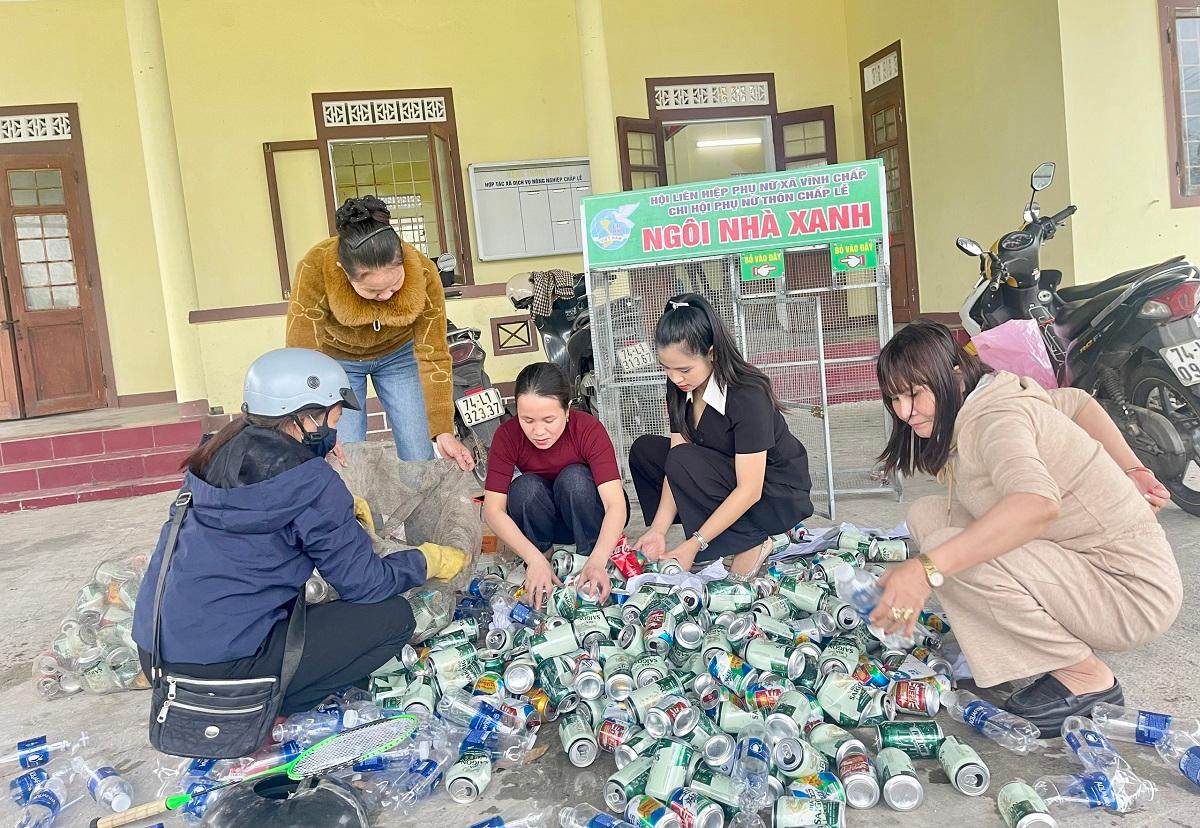 Chị Nguyễn Thị Lan Vân, Phó chủ tịch Hội LHPN xã Vĩnh Linh chia sẻ: “Mô hình vận hành rất đơn giản nhưng hiệu quả. Mỗi khi nấu ăn hay dọn dẹp nhà cửa, chúng tôi đều ý thức giữ lại những gì có thể tái chế được. Của ít lòng nhiều, cứ gom góp lại, một hai tháng khi nhà đầy, chị em lại cùng nhau phân loại để đem bán, lấy tiền gây quỹ”.