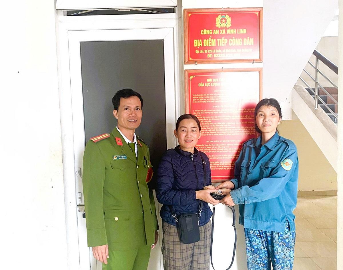 Sáng ngày 19/01/2026, Công an xã Vĩnh Linh xác nhận vừa phối hợp thực hiện thủ tục trao trả lại tài sản cho người dân bị đánh rơi trên địa bàn. Người có hành động đẹp, nhặt được và trả lại tài sản là chị Trần Thị Hoa Lý (SN 1977, trú tại thôn 9, xã Vĩnh Linh).