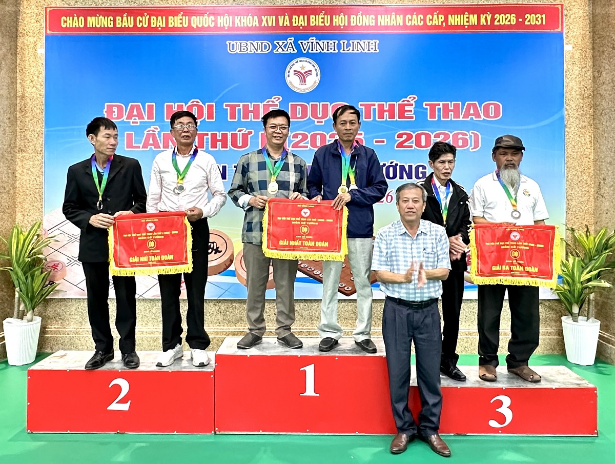 Tại lễ bế mạc, Ban Tổ chức Đại hội TDTT xã Vĩnh Linh lần thứ I (2025 - 2026) đã trao cờ và huy chương cho các tập thể, cá nhân đạt thành tích cao trong giải đấu.