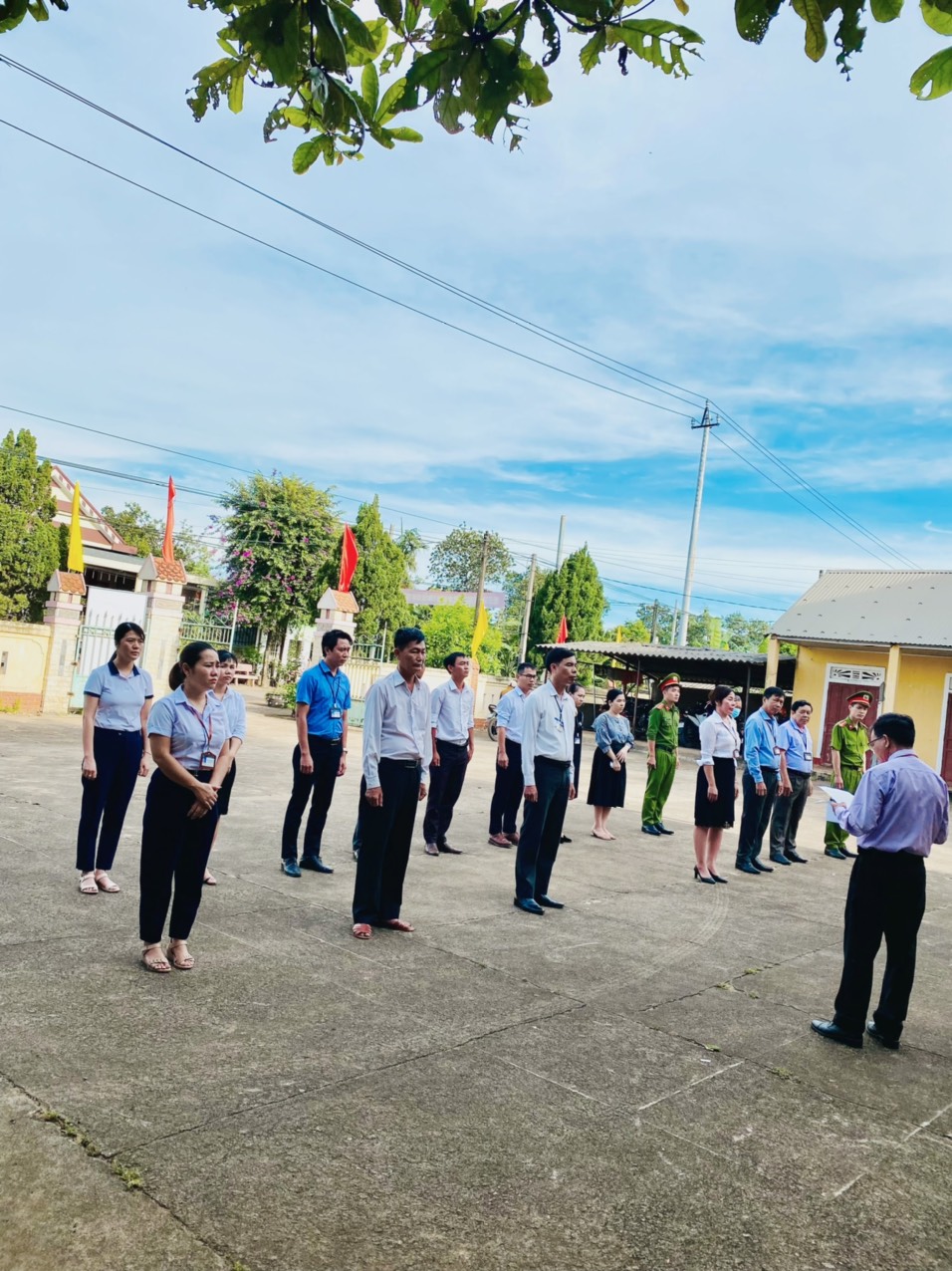 Tại buổi chào cờ, Đ/c Lê Văn An PBT TT Đảng uỷ đã tuyên truyền mục đích ý nghĩa của việc chào cờ là truyền thống cách mạng của đất nước ta và thể hiện tinh thần yêu nước trong mỗi cán bộ,công chức, người lao động.