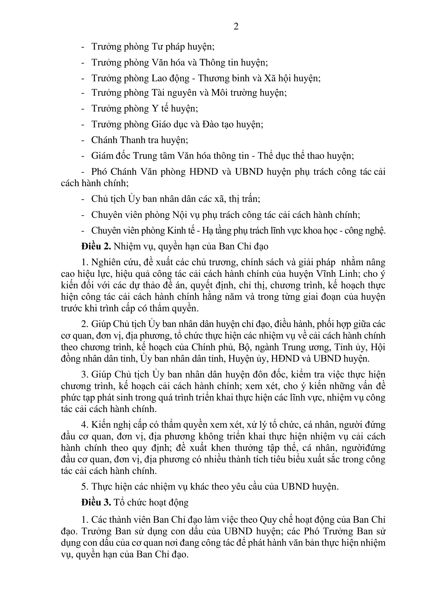 Ngày 31/5/2023, UBND huyện Vĩnh Linh ban hành Quyết định thành lập Ban Chỉ đạo Cải cách hành chính.