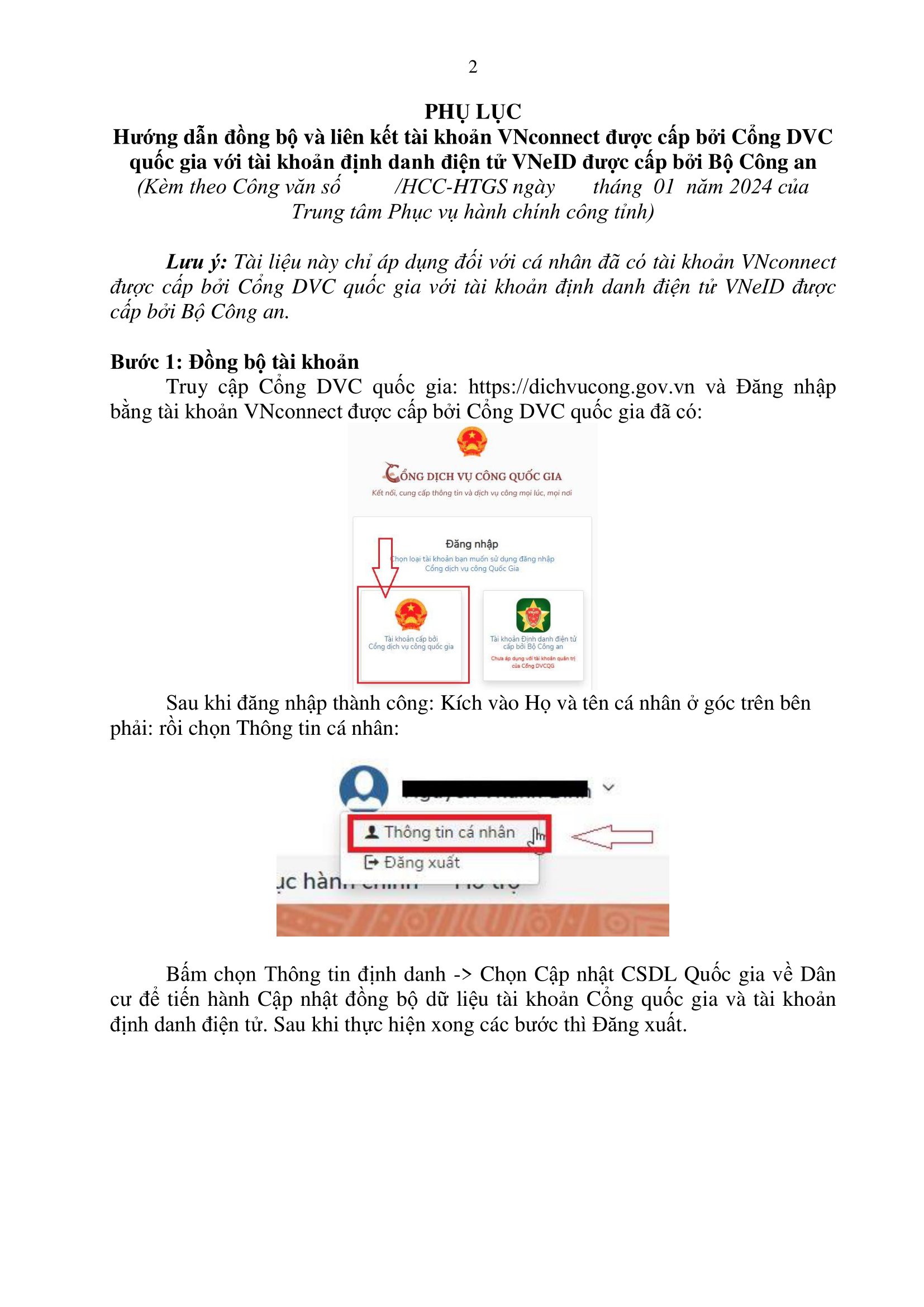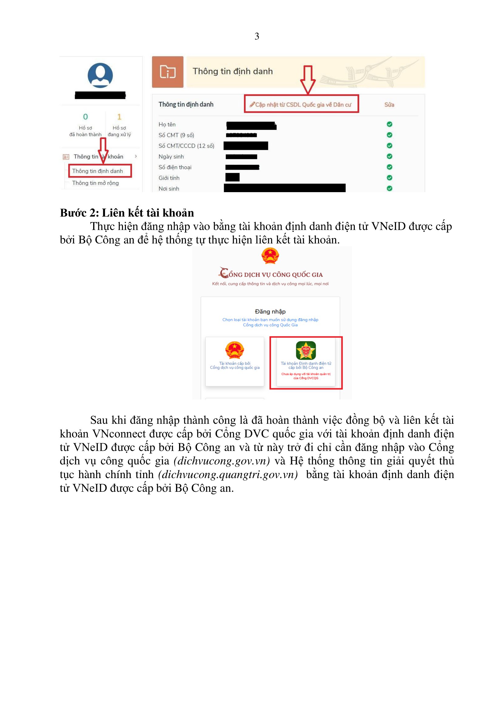 Hướng dẫn đồng bộ và liên kết tài khoản Cổng DVC quốc gia với tài khoản VNeID Bộ Công an