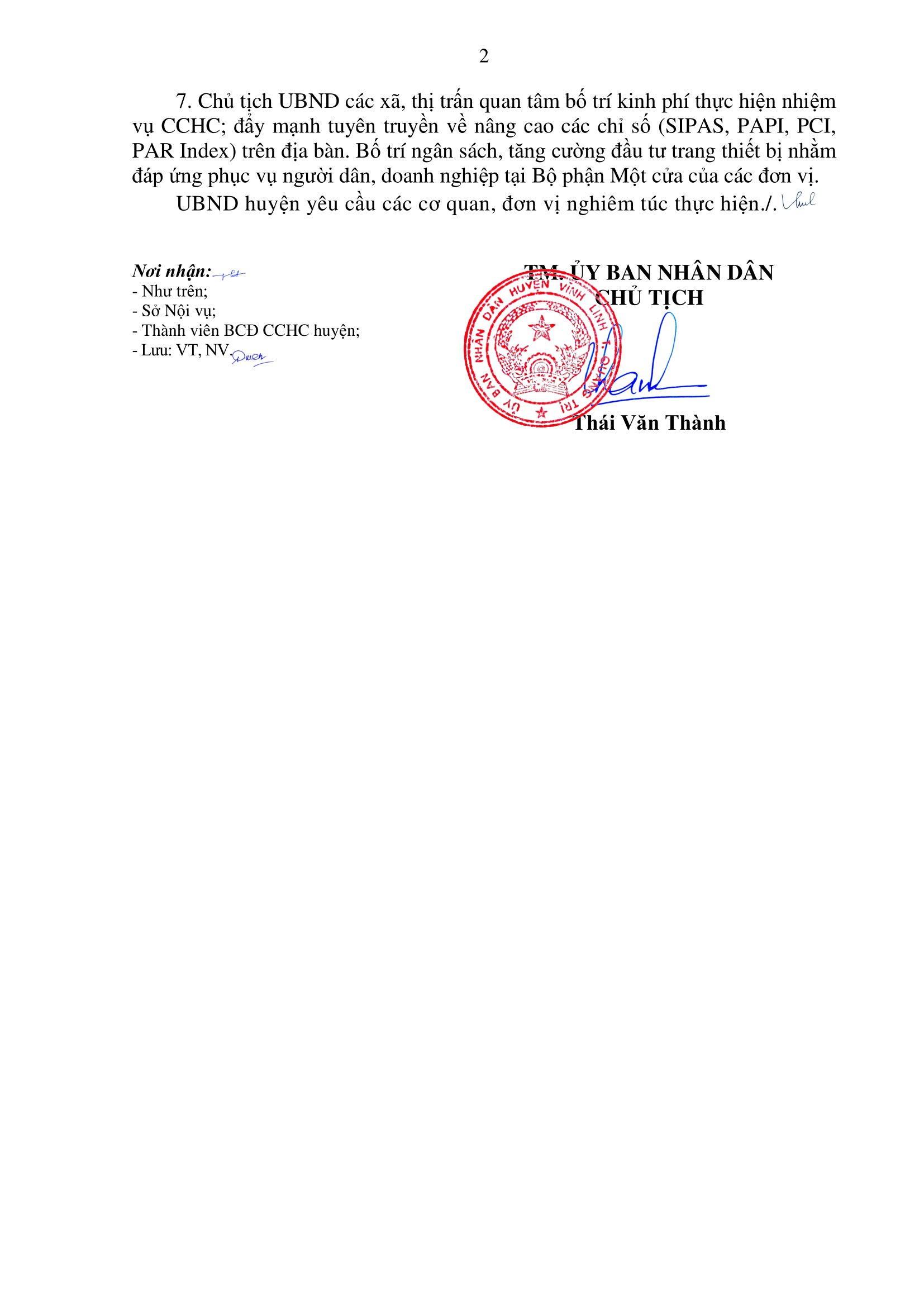 Ngày 6/5/2024, UBND huyện Vĩnh Linh có văn bản chỉ đạo các cơ quan chuyên môn, đơn vị sự nghiệp thuộc huyện; UBND các xã, thị trấn tăng cường công tác nâng cao chỉ số PAR INDEX, SIPAS, PAPI, PCI năm 2024.