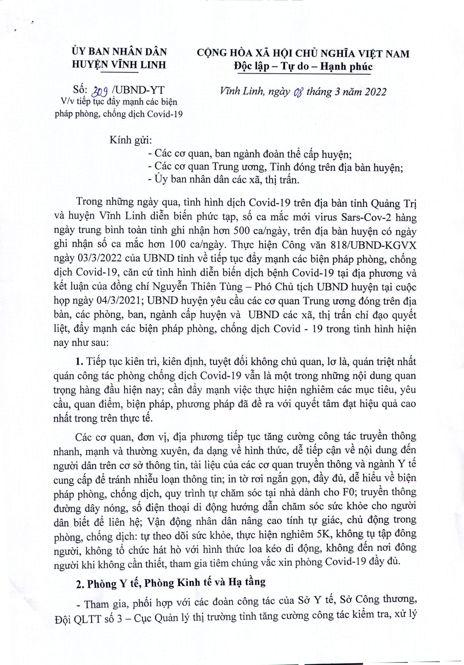 - Vĩnh Linh: Tiếp tục triển khai quyết liệt các biện pháp phòng, chống dịch Covid-19 (01/04/2022)