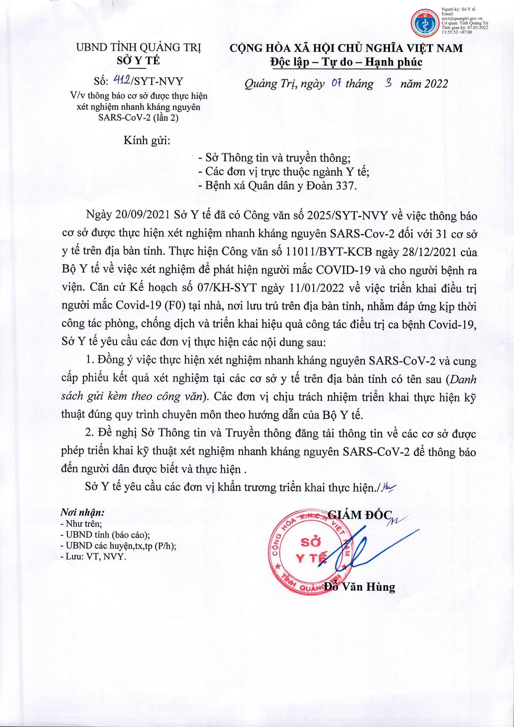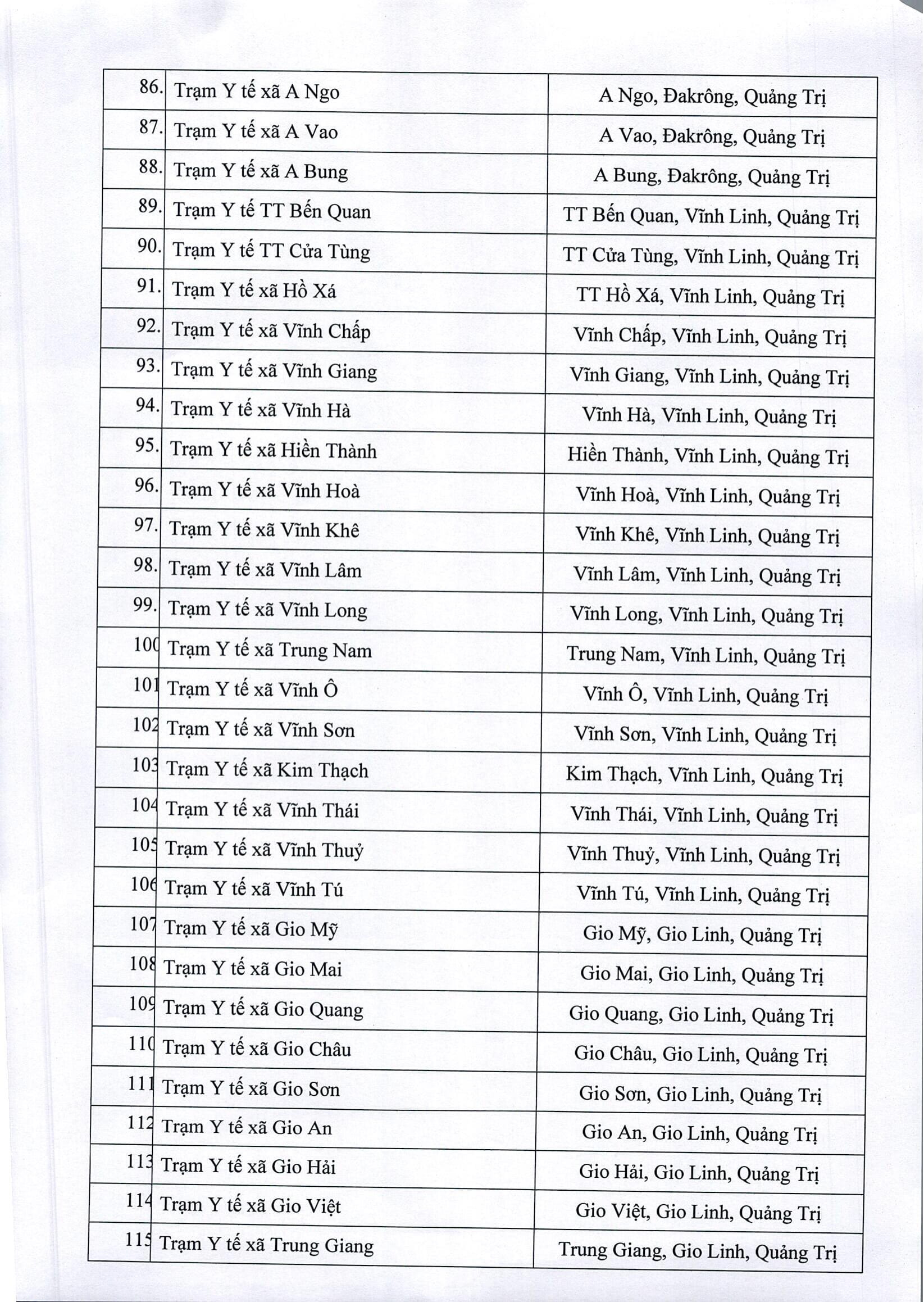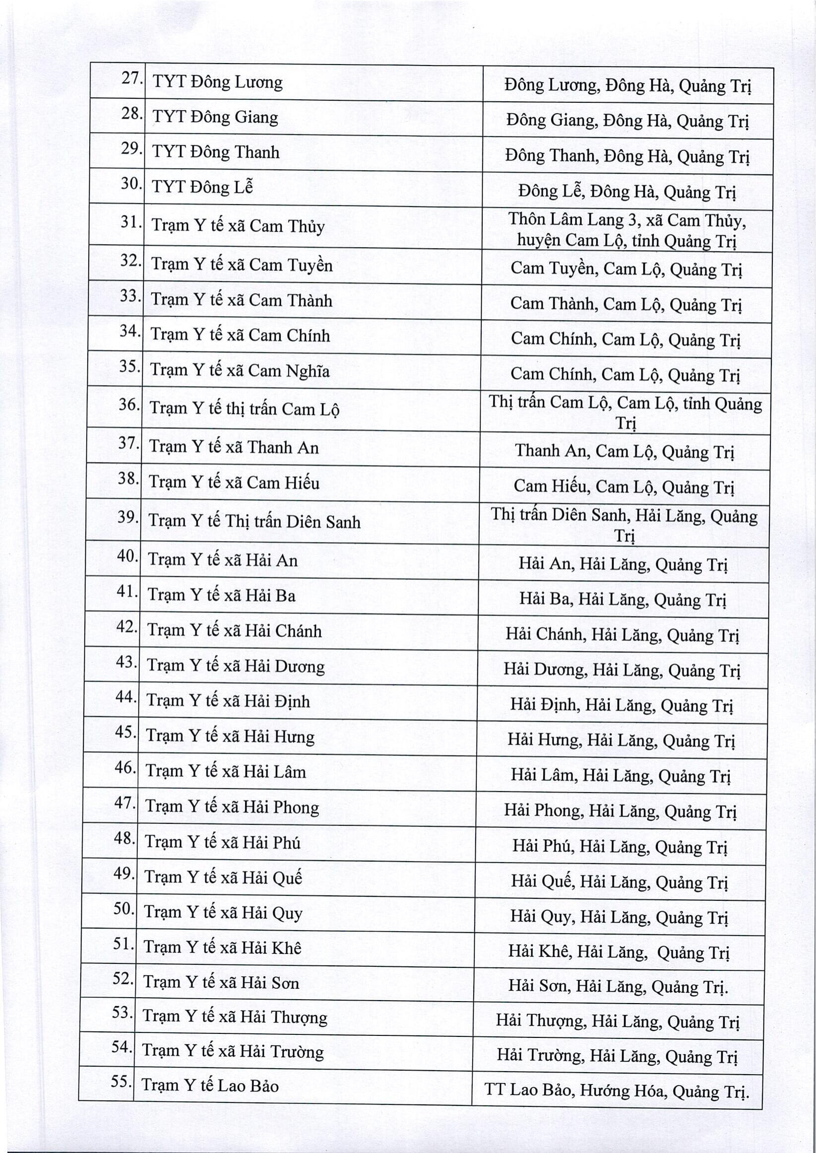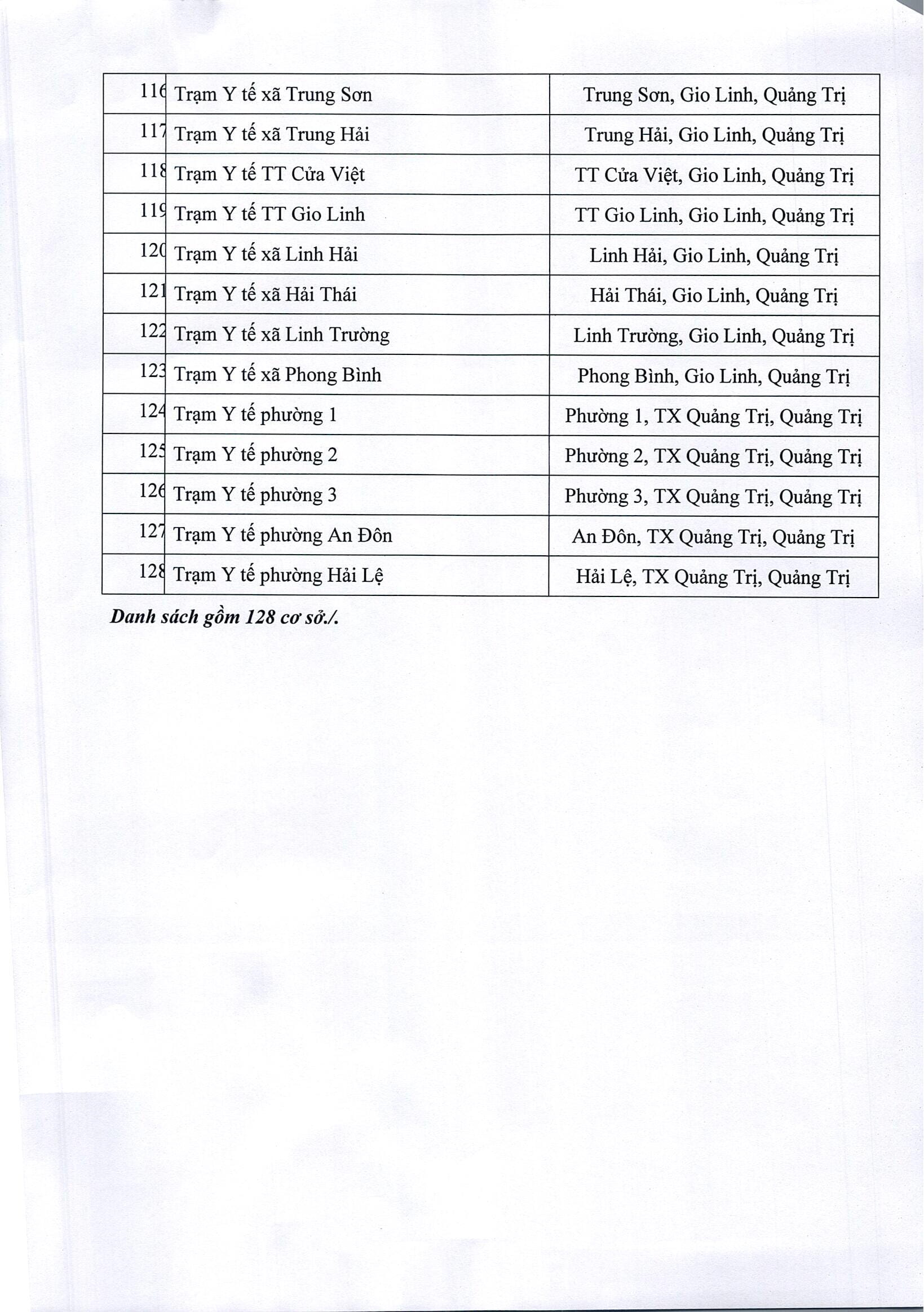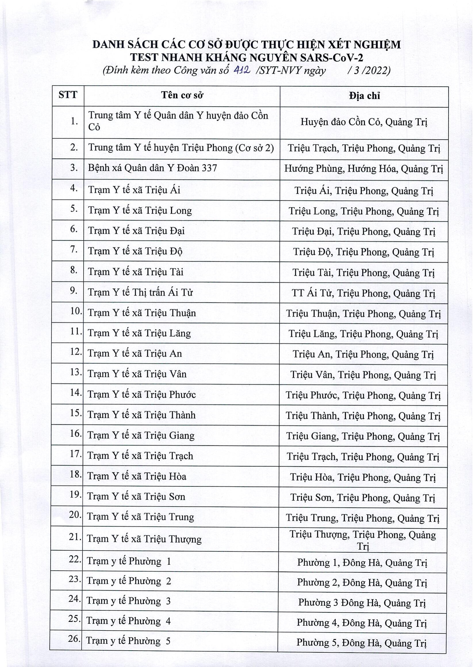 Các cơ sở được thực hiện xét nghiệm kháng nguyên SARS-CoV-2 trên địa bàn tỉnh Quảng Trị