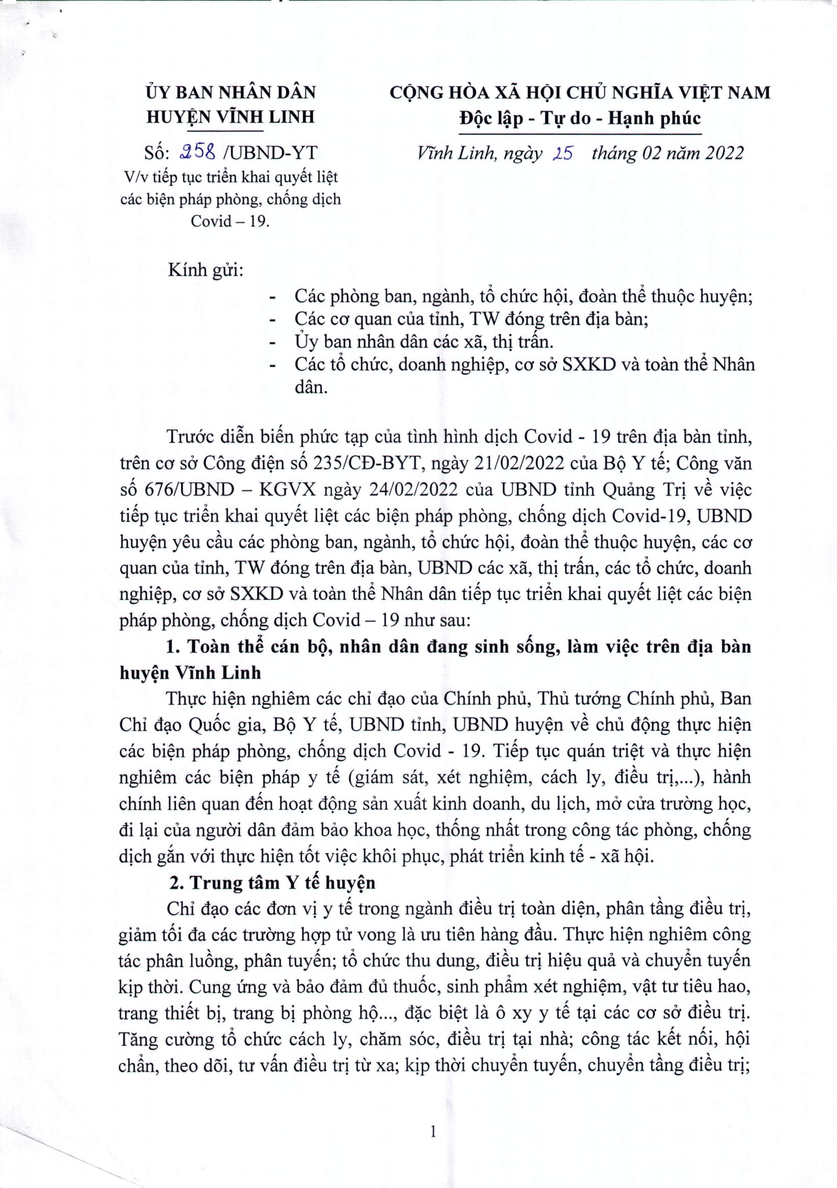 - Tiếp tục triển khai quyết liệt các biện pháp phòng, chống dịch Covid-19 (01/04/2022)