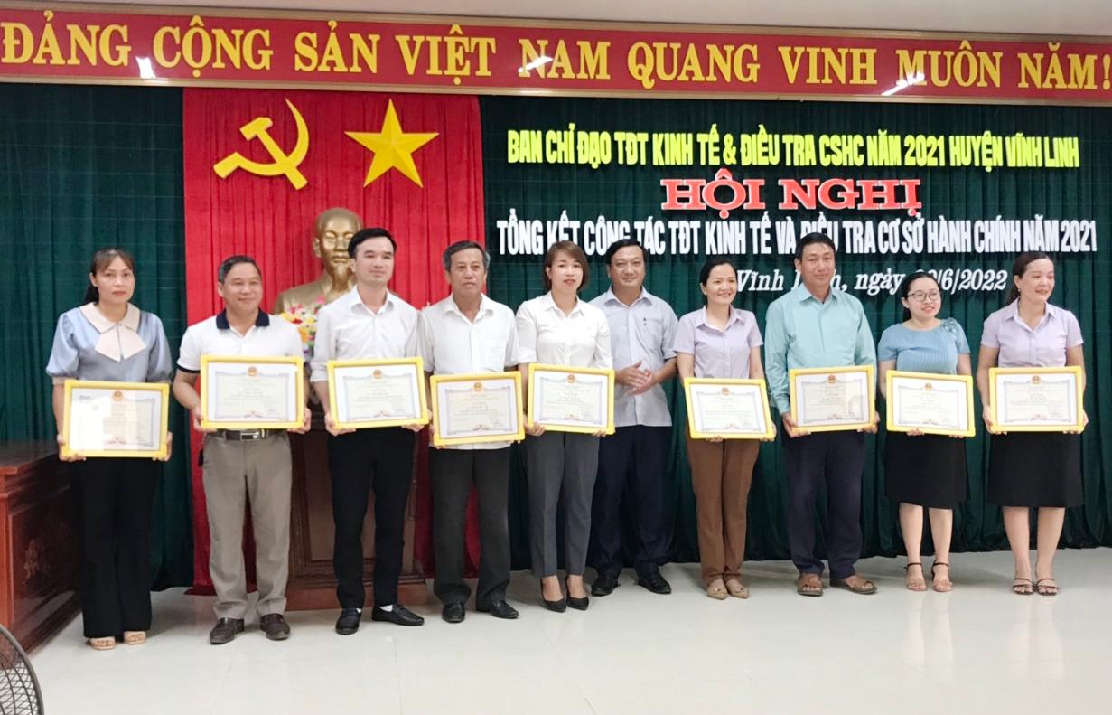 Nhân dịp này, Cục Thống kê tỉnh Quảng Trị và UBND huyện đã khen thưởng các tập thể, cá nhân có thành tích tích trong công tác Tổng điều tra kinh tế và điều tra cơ sở hành chính năm 2021.