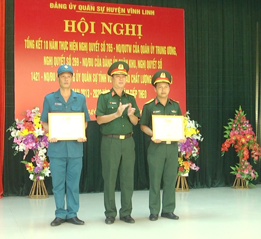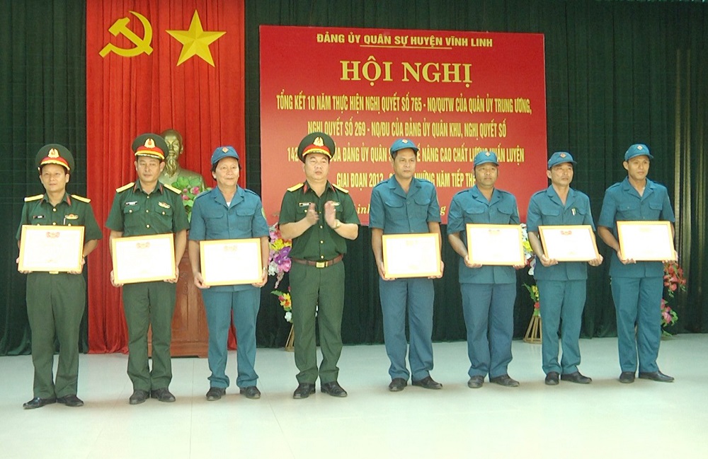 Nhân dịp này Bộ CHQS tỉnh, huyện Vĩnh Linh đã khen thưởng các tập thể cá nhân có thành tích xuất sắc trong việc thực hiện các Nghị quyết về nâng cao chất lượng huấn luyện giai đoạn 2013-2020.
