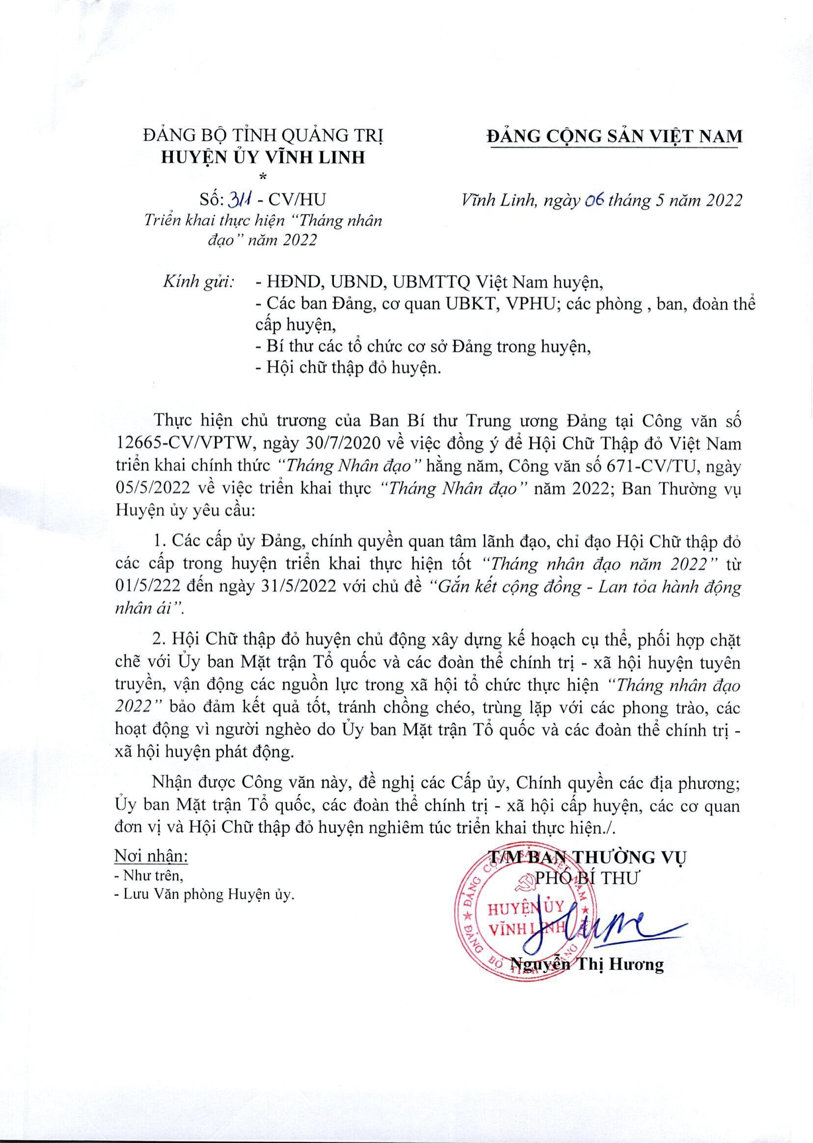 Triển khai thực hiện Tháng nhân đạo năm 2022