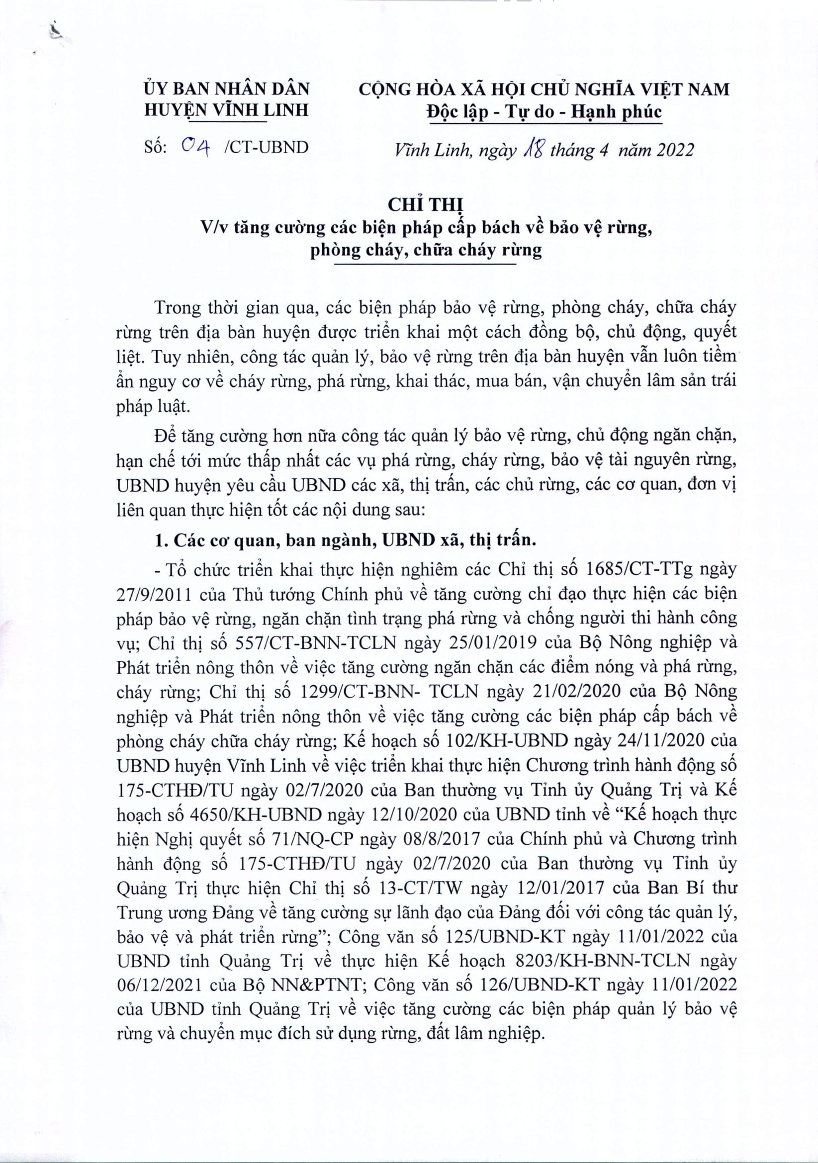 - Kết luận của Chủ tịch UBND huyện Vĩnh Linh Thái Văn Thành về nhiệm vụ trọng tâm Quý 2 năm 2022 (05/07/2022)