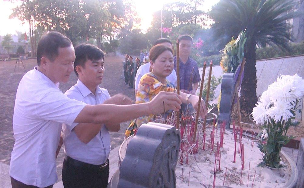 Ngay sau lễ viếng, dâng hương, dâng hoa, lãnh đạo huyện và lực lượng vũ trang; cán bộ, công chức, viên chức cùng Nhân dân đã kính cẩn thắp những nén hương, đặt những ngọn nến lên từng phần mộ của các anh hùng, liệt sĩ.