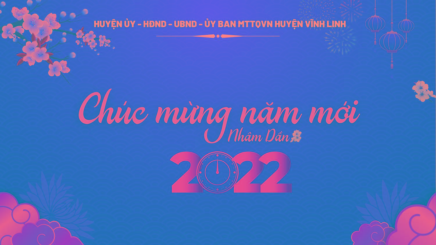 Nhân dịp đón chào mùa Xuân mới Nhâm Dần 2022, thay mặt Huyện ủy, HĐND, UBND, UBMTTQ Việt Nam huyện Vĩnh Linh, tôi kính chúc đồng bào, đồng chí, các gia đình thương binh liệt sỹ, gia đình có công với nước, các vị lão thành cách mạng, các Mẹ Việt Nam anh hùng, Anh hùng LLVT, Anh hùng Lao động; toàn thể cán bộ, đảng viên, các tầng lớp Nhân dân, lực lượng vũ trang, con em Vĩnh Linh đang sinh sống, học tập, công tác trên khắp mọi miền Tổ quốc và ở nước ngoài một năm mới Mạnh khỏe - Hạnh phúc - Bình an - Thịnh vượng.