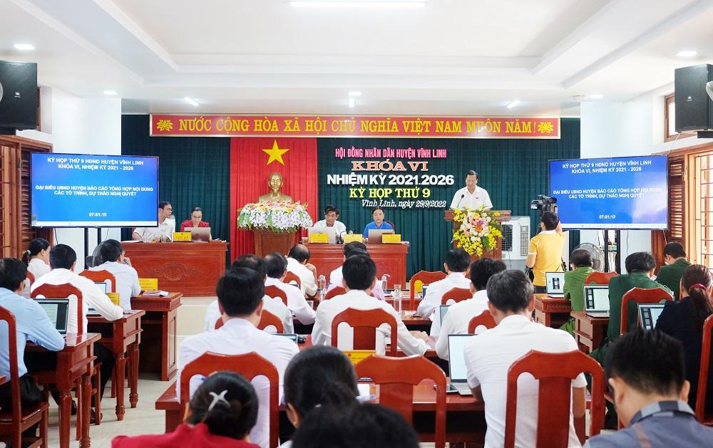 Ngày 29/9/2022, HĐND huyện Vĩnh Linh khóa VI, nhiệm kỳ 2021-2026 đã tổ chức kỳ họp thứ 9. Đến dự có đồng chí Trần Nhật Quang - Bí thư Huyện ủy, Nguyễn Thị Hương- Phó Bí thư Thường trực Huyện ủy, Chủ tịch HĐND huyện, Thái Văn Thành - Chủ tịch UBND huyện, Vũ Văn Phong- Trưởng Ban Dân vận Huyện ủy, Chủ tịch UBMT huyện.
