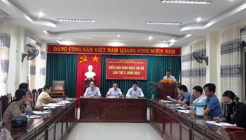 Thực hiện Hướng dẫn số 15-HD/HU ngày 20/5/2022 của BTV Huyện ủy Vĩnh Linh về tổ chức diễn đàn sinh hoạt chi bộ năm 2022, chiều ngày 27/10/2022, Liên Chi bộ Ban Tuyên giáo - TTCT, Ban Dân vận và Ủy ban kiểm tra Huyện ủy đã tổ chức diễn đàn sinh hoạt chuyên đề về tăng cường bảo vệ nền tảng tư tưởng của Đảng, đấu tranh phản bác các quan điểm sai trái, thù địch trong tình hình mới.