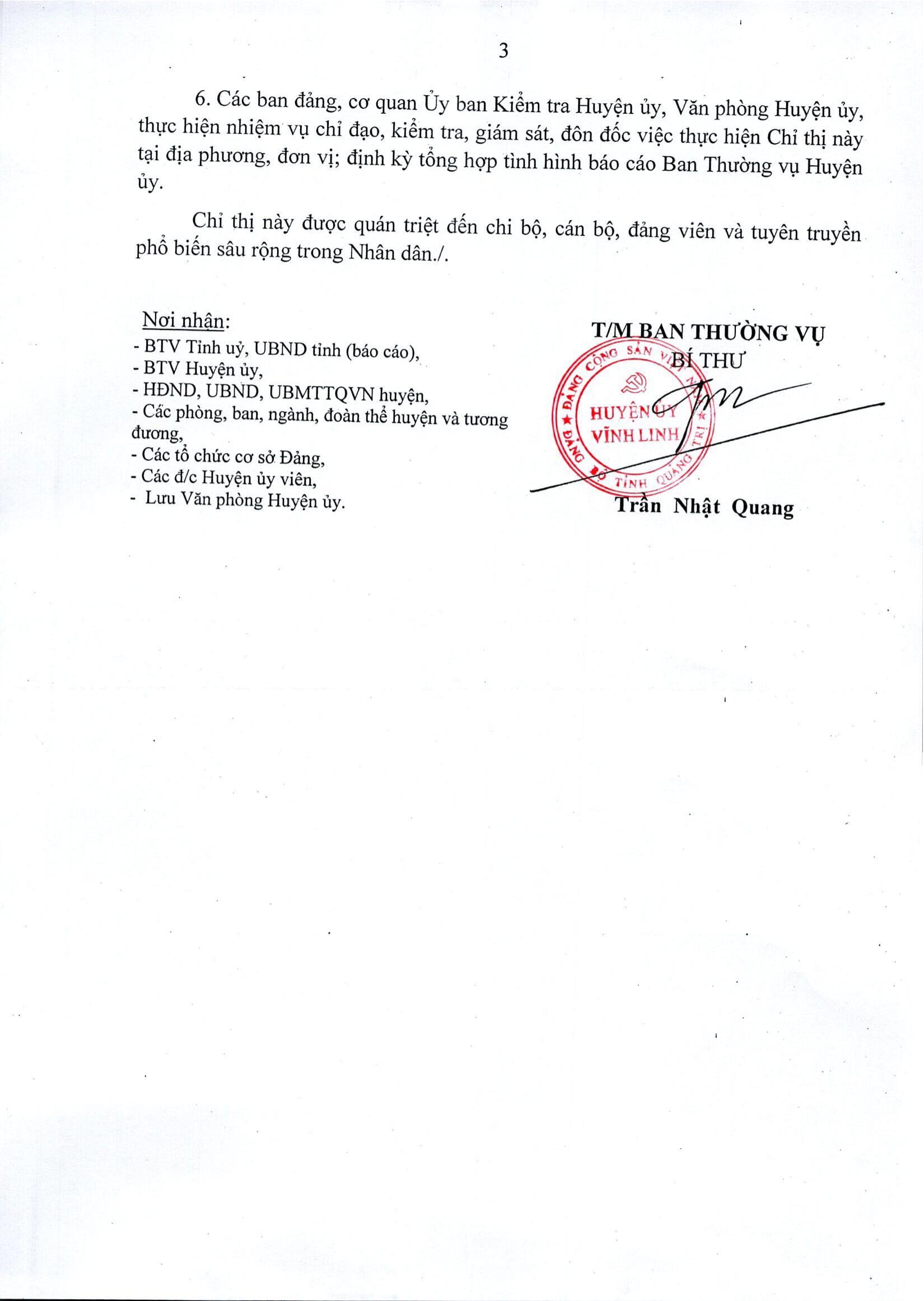 Chỉ thị của Ban Thường vụ Huyện ủy Vĩnh Linh về tổ chức kỷ niệm 70 năm truyền thống Vĩnh Linh 25/8 (1954- 2024)