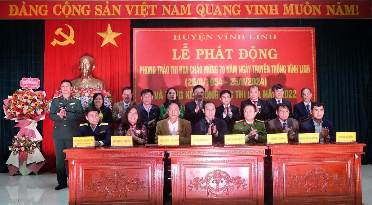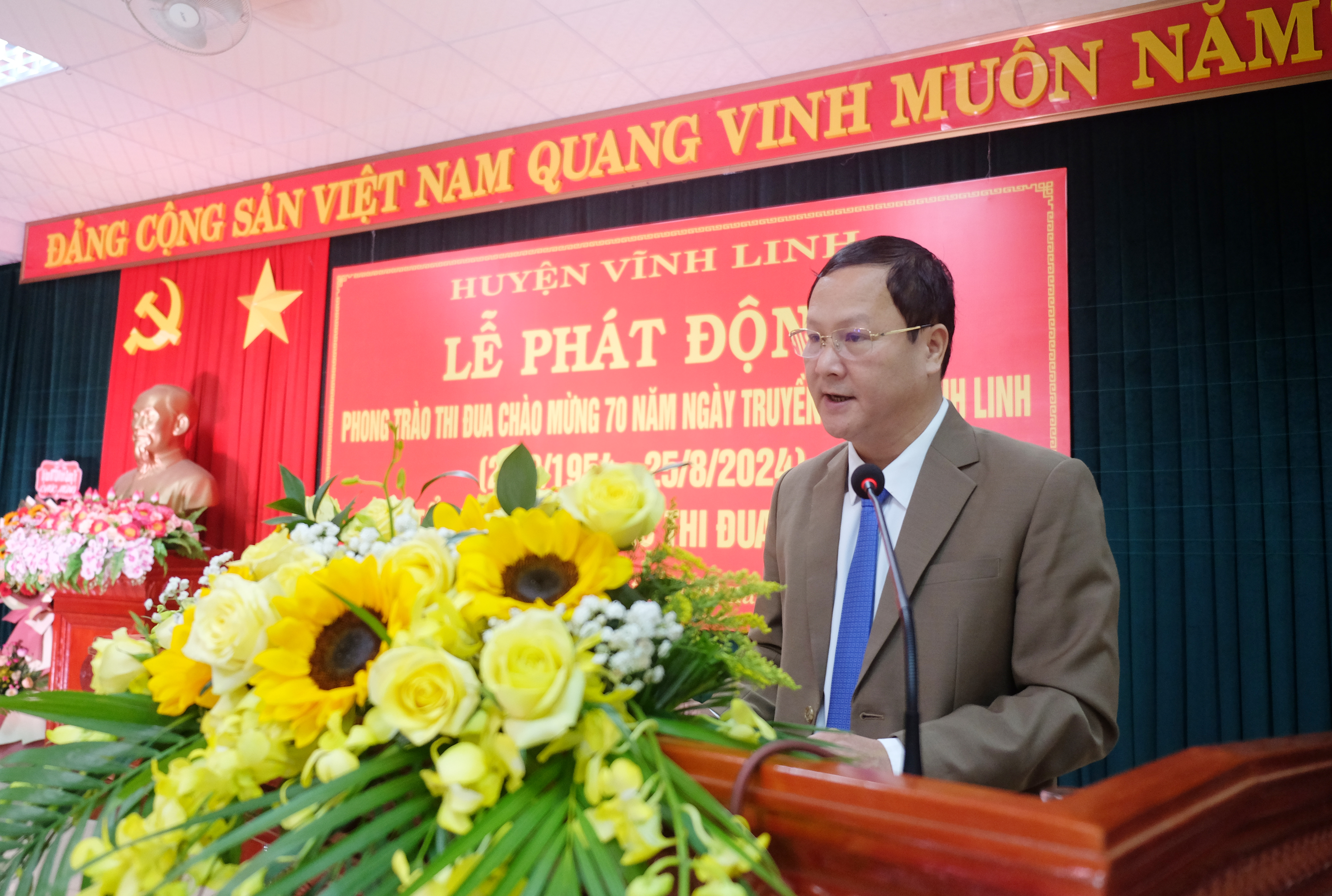 Tại buổi lễ, Chủ tịch UBND huyện Vĩnh Linh Thái Văn Thành đã phát động phong trào thi đua, kêu gọi cán bộ, CNCVC-NLĐ, LLVT và Nhân dân lập thành tích cao nhất chào mừng 70 năm truyền thống Vĩnh Linh bắt đầu từ tháng 1/2023 đến tháng 8/2024 với chủ đề xuyên suốt được xác định là: “Đoàn kết, đổi mới, sáng tạo, thi đua lập thành tích chào mừng 70 năm ngày truyền thống Vĩnh Linh, phấn đấu huyện đạt chuẩn nông thôn mới”. Trong đó tập trung vào một số nhiệm vụ trọng tâm: tăng cường công tác tuyên truyền về truyền thống mảnh đất, con người Vĩnh Linh anh hùng, những thành tựu trong 70 năm xây dựng và phát triển, đặc biệt là những kết quả nổi bật sau hơn 35 năm thực hiện công cuộc đổi mới, trong thực hiện Nghị quyết Đại hội Đảng bộ tỉnh, Nghị quyết Đại hội Đảng bộ huyện nhiệm kỳ 2020 - 2025. Đẩy mạnh các phong trào thi đua yêu nước trong cả hệ thống chính trị và mọi tầng lớp nhân dân để khơi dậy khát vọng đổi mới nhằm xây dựng quê hương Vĩnh Linh ngày càng phát triển. Phát động phong trào toàn dân chăm sóc các gia đình thương binh, bệnh binh, người có công với cách mạng. Kịp thời phát hiện, bồi dưỡng, nhân rộng điển hình tiên tiến, thường xuyên nêu gương người tốt việc nhằm tạo sức mạnh lan tỏa tích cực trong đời sống xã hội để cán bộ và nhân dân học tập, noi theo.