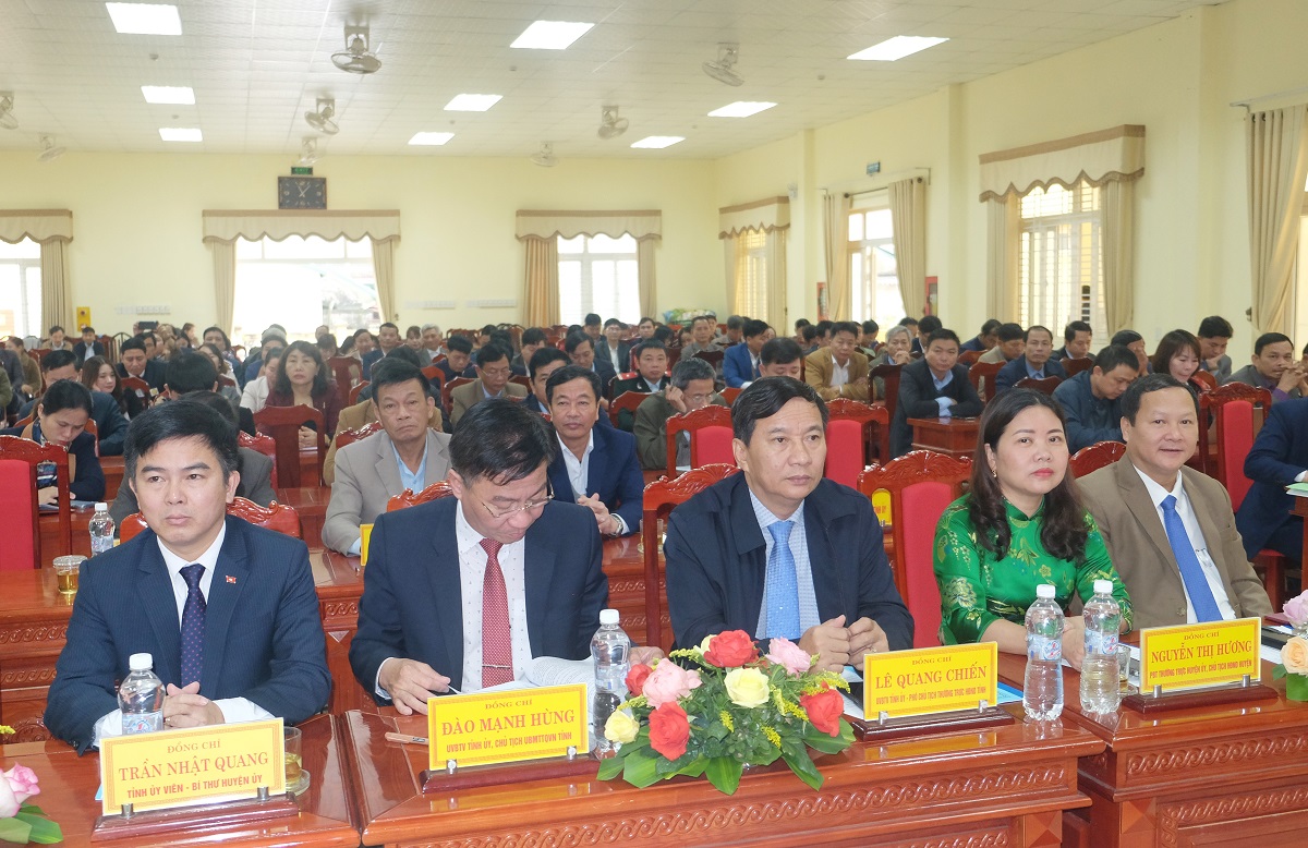 Thay mặt lãnh đạo tỉnh, đồng chí Đào Mạnh Hùng - Ủy viên BTV Tỉnh ủy, Chủ tịch UBMTTQVN tỉnh đã ghi nhận, biểu dương và chúc mừng những thành tích mà Đảng bộ, chính quyền, quân và dân huyện Vĩnh Linh đạt được trong thời gian qua. Đặc biệt trong năm 2022 mặc dù gặp không ít khó khăn nhưng huyện Vĩnh Linh vẫn đạt và vượt 20/21 chỉ tiêu đề ra. Đồng chí khẳng định những thành tựu mà huyện Vĩnh Linh đạt được là kết tinh của chủ nghĩa yêu nước, tinh thần đoàn kết, ý chí tự lực tự cường đã được cán bộ, đảng viên và nhân dân huyện Vĩnh Linh giữ gìn và hun đúc, không ngừng củng cố và phát huy qua các thời kỳ cách mạng. Trong thời gian tới, đồng chí đề nghị huyện Vĩnh Linh cần tiếp tục phát huy sức mạnh đại đoàn kết, thi đua lập thành tích cao nhất hướng tới chào mừng 70 năm truyền thống Vĩnh Linh. Trong đó chú trọng triển khai sâu rộng và thực hiện hiệu quả Nghị quyết Đại Đảng các cấp, nhất là thực hiện 3 chương trình mục tiêu quốc gia giai đoạn 2021- 2025. Huy động mọi nguồn lực trong xã hội, đẩy nhanh tiến độ để hoàn thành mục tiêu trở thành huyện NTM theo đúng lộ trình. Qua đó khơi dậy niềm tự hào về truyền thống quê hương, tạo động lực và sức sống nội sinh nhằm xây dựng Vĩnh Linh ngày càng giàu đẹp, văn minh.
