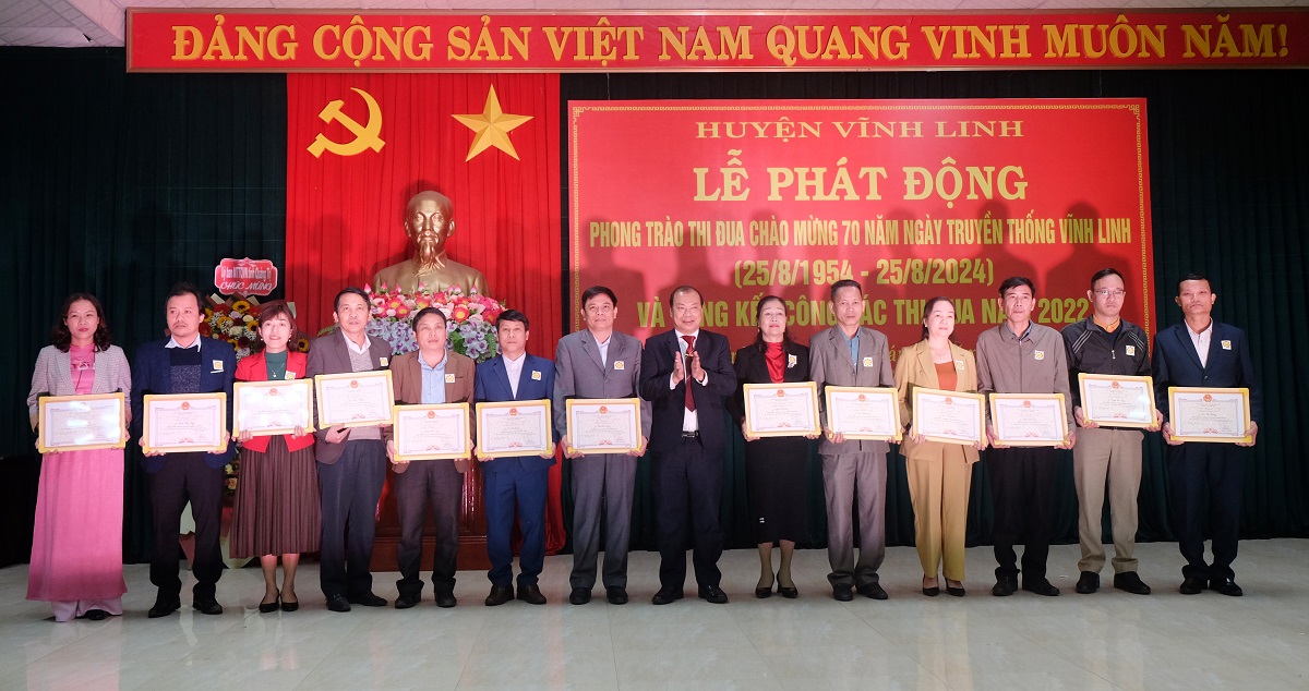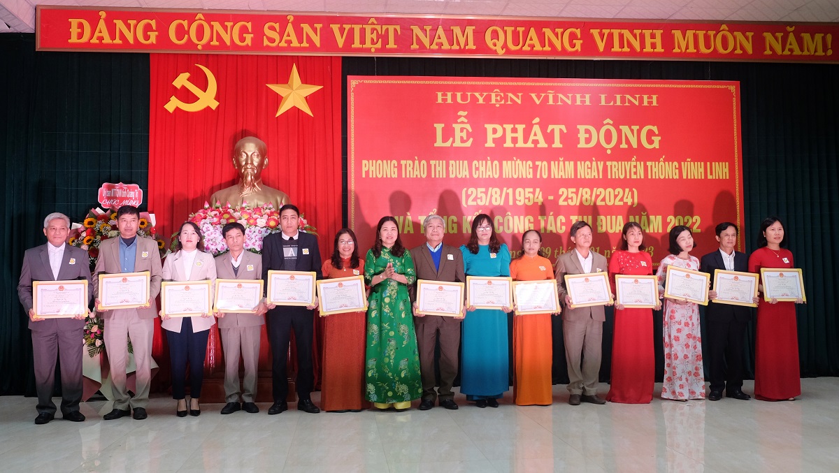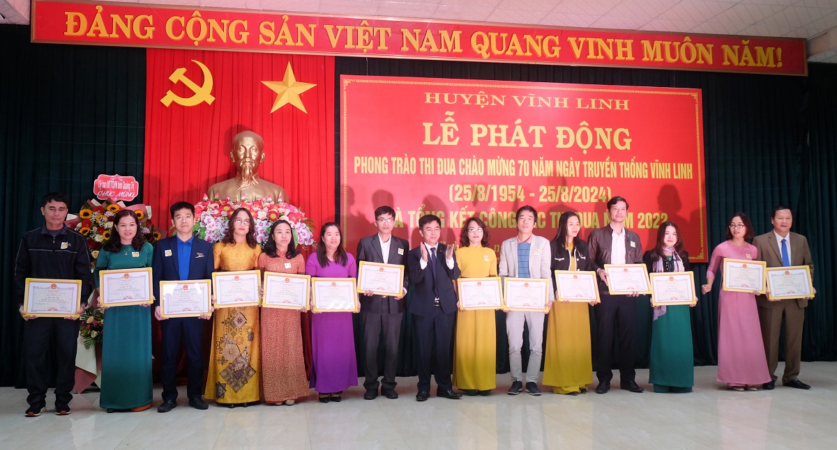Ngày 9/1/2023, huyện Vĩnh Linh tổ chức Lễ phát động phong trào thi đua 20 tháng cao điểm hướng tới 70 năm ngày truyền thống Vĩnh Linh 25/8 (1954 - 2024); tổng kết công tác thi đua khen thưởng năm 2022. Tham dự về phía lãnh đạo tỉnh có các đồng chí: Đào Mạnh Hùng - Ủy viên BTV Tỉnh ủy, Chủ tịch UBMTTQVN tỉnh; Lê Quang Chiến - Ủy viên BTV Tỉnh ủy, Phó Chủ tịch Thường trực HĐND tỉnh. Về phía huyện Vĩnh Linh có các đồng chí: Trần Nhật Quang - Bí thư Huyện ủy; Nguyễn Thị Hương - Phó Bí thư Thường trực Huyện ủy, Chủ tịch HĐND huyện; Thái Văn Thành - Chủ tịch UBND huyện, Vũ Văn Phong- Trưởng Ban Dân vận Huyện ủy, Chủ tịch UBMTTQVN huyện, cùng các đồng chí trong BTV Huyện ủy, Thường trực HĐND, UBND, UBMTTQ cùng lãnh đạo các địa phương, đơn vị trên địa bàn.
