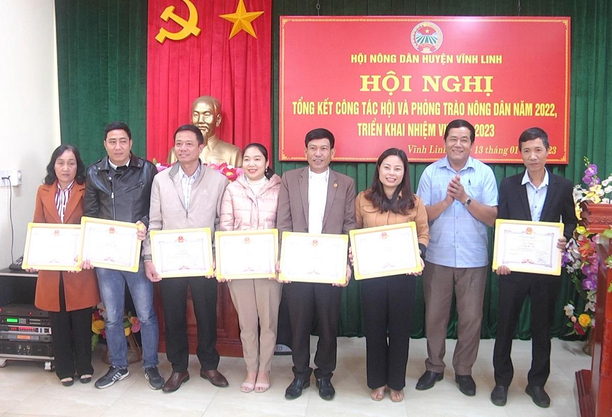 Năm 2022, các cấp Hội ND huyện Vĩnh Linh đã hoàn thành xuất sắc nhiệm vụ được giao, với 100% chỉ tiêu đều đạt và vượt kế hoạch đề ra. Trong đó, nổi bật toàn Hội có 5.349 hộ nông dân đạt SXKD giỏi các cấp. Nguồn quỹ hỗ trợ nông dân các cấp tăng trên 3,1 tỷ đồng; thực hiện phong trào xây dựng NTM 16/18 cơ sở Hội có các tuyến đường tự quản, 100% hội hội viên đạt GĐVH, nông dân toàn huyện đa tham gia đóng góp ngày công, đối ứng, hiến đất để xây dựng các công trình hạ tầng cơ sở; trong năm hội đã giới thiệu 32 cán bộ, hội viên ưu tú cho Đảng bồi dưỡng và có 19 hội viên được kết nạp vào tổ chức Đảng CSVN; thành lập 1 Chi hội và 1 HTX mới…