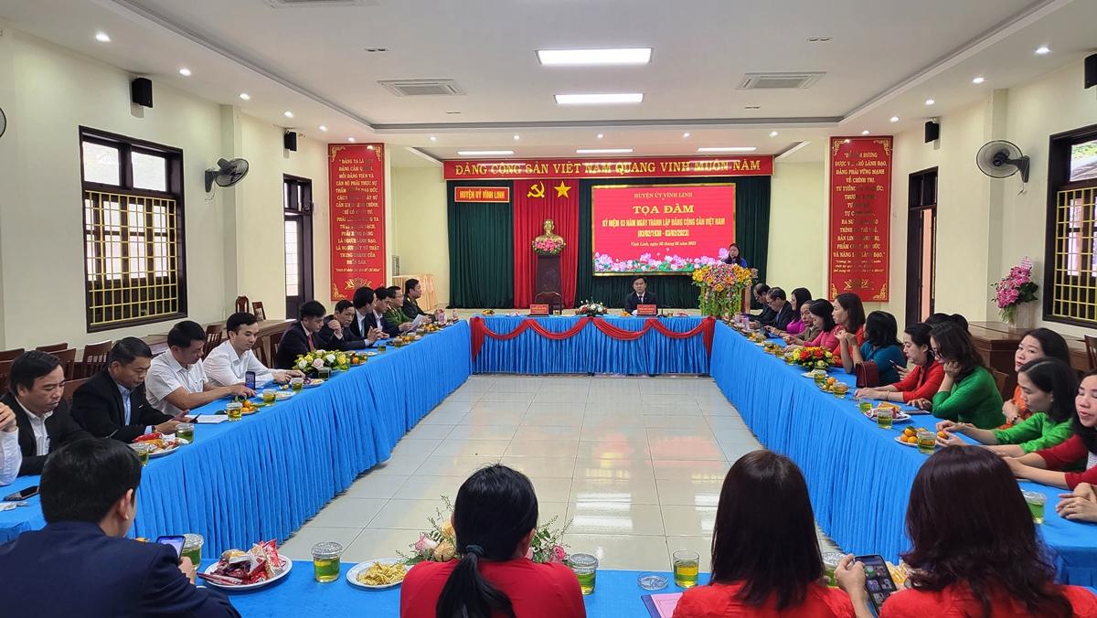 Ngày 3/2, Huyện ủy Vĩnh Linh tổ chức tọa đàm kỷ niệm 93 năm ngày thành lập Đảng Cộng sản Việt Nam 3/2 (1930- 2023). Tham dự có các đồng chí: Trần Nhật Quang- Bí thư Huyện ủy; Nguyễn Thị Hương- Phó Bí thư Thường trực Huyện ủy, Chủ tịch HĐND huyện cùng các đồng chí trong BTV, Thường trực HĐND, UBND, UBMTTQ Việt Nam huyện.