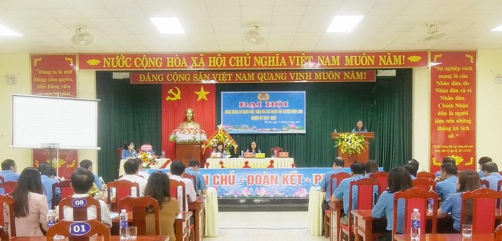 Ngày 17/3/2023, Công đoàn cơ sở Khối Mặt trận- Đoàn thể huyện Vĩnh Linh tổ chức đại hội nhiệm kỳ 2023 - 2028. Tham dự có đồng chí Vũ văn Phong, Trưởng Ban Dân vận Huyện ủy, Chủ tịch UBMTTQ Việt Nam huyện; đồng chí Nguyễn Bá Lưu, Chủ tịch LĐLĐ huyện.