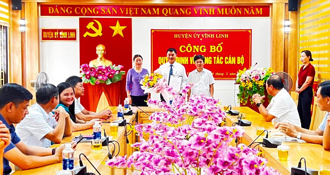 Ngày 10/5/2023, thực hiện Quy định số 07-QĐ/HU ngày 8/3/2022 của Ban Thường vụ Huyện uỷ Vĩnh Linh “về bổ nhiệm cán bộ và giới thiệu cán bộ ứng cử”, Thường trực Huyện uỷ tổ chức công bố Quyết định số 1234-QĐ/HU ngày 17/4/2023 của Ban Thường vụ Huyện uỷ về bổ nhiệm Trưởng Ban Dân vận Huyện ủy đối với đồng chí Phan Ngọc Khoa, HUV, Chánh Văn phòng Huyện ủy.
