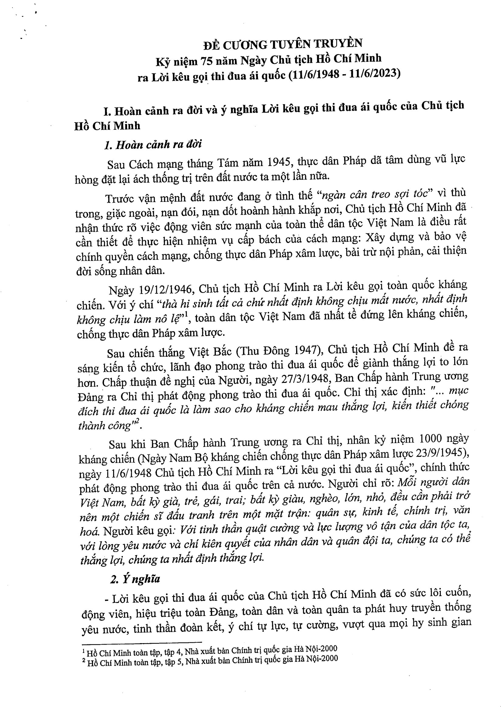 Nhân kỷ niệm kỷ niệm 75 năm Ngày Chủ tịch Hồ Chí Minh ra Lời kêu gọi thi đua ái quốc 11/6 (1948- 11/6), Ban Tuyên giáo Trung ương đã ban hành Đề cương tuyên truyền. Cổng thông tin điện tử huyện Vĩnh Linh giới thiệu toàn văn Đề cương này.